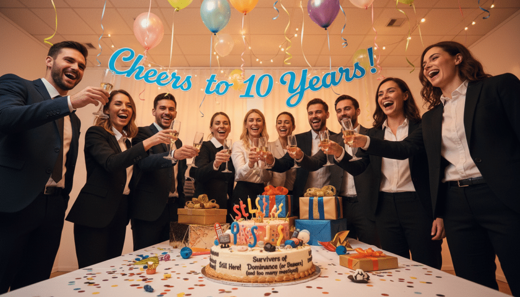 - 10 Jahre im selben Unternehmen – das ist ja fast länger als die meisten Beziehungen auf Tinder!
