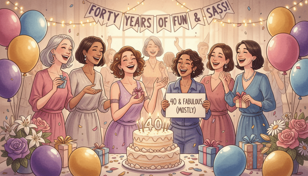 Dieser Text richtet sich an alle, die eine Frau zum 40. Geburtstag mit Humor und einer Prise Frechheit überraschen möchten. Hier findest du eine sorgfältig ausgewählte Sammlung von 100 Sprüchen, die garantiert für Lacher sorgen und das Geburtstagskind zum Schmunzeln bringen, ohne respektlos zu werden.