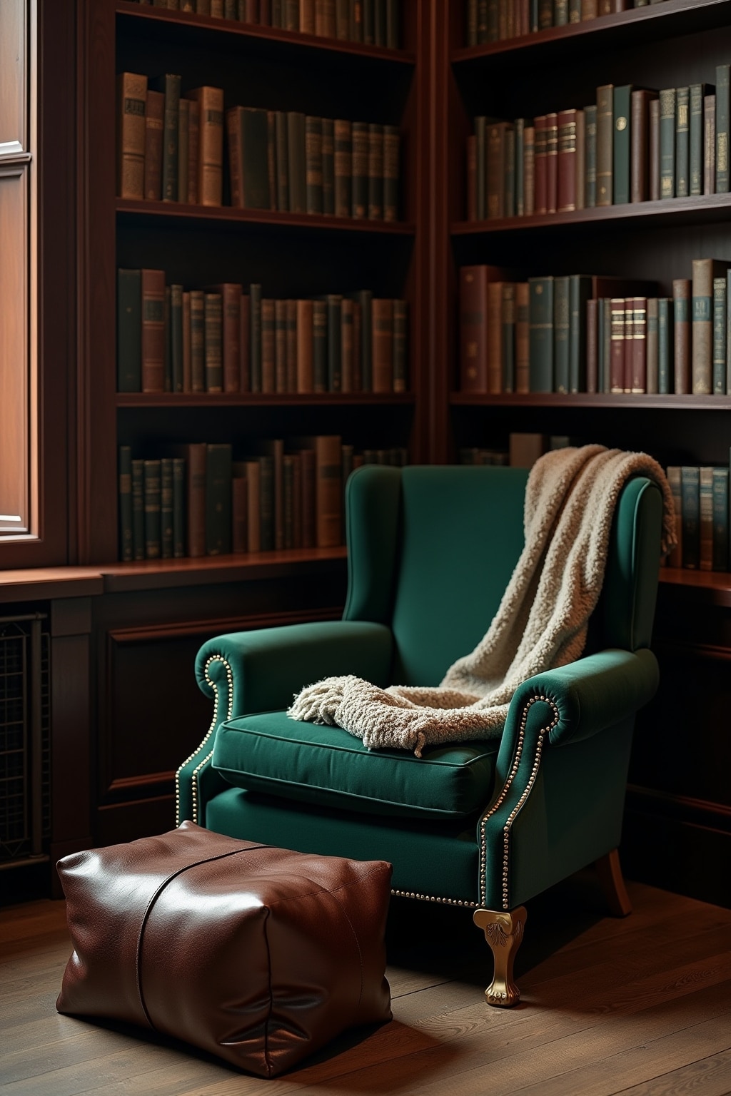 The personal library forms the intellectual heart of any Dark Academia-inspired dwelling, where bookshelves laden with classic literature and academic tomes create the perfect scholarly atmosphere. These shelving units should ideally reach from floor to ceiling, preferably crafted from dark mahogany or walnut, their wooden frames housing leather-bound classics, vintage encyclopedias, and well-worn poetry collections. Reading nooks tucked into bay windows or nestled into corners transform otherwise unused spaces into sanctuaries of intellectual pursuit, complete with a plush velvet armchair or chaise lounge upholstered in deep burgundy or forest green. A brass reading lamp casting a warm, amber glow provides essential illumination while maintaining the moody aesthetic characteristic of Dark Academia interiors. Stacks of books with tattered edges can be artfully arranged on side tables and windowsills, suggesting an ongoing pursuit of knowledge that spills beyond the confines of formal shelving. Globe stands, antique bookends, and magnifying glasses scattered amongst the literary collection add layers of scholarly intrigue and visual depth to the space. The scent of old books and the subtle crackling of pages turning complete the sensory experience of these literary havens, making them not merely decorative features but functional retreats for contemplation and study.