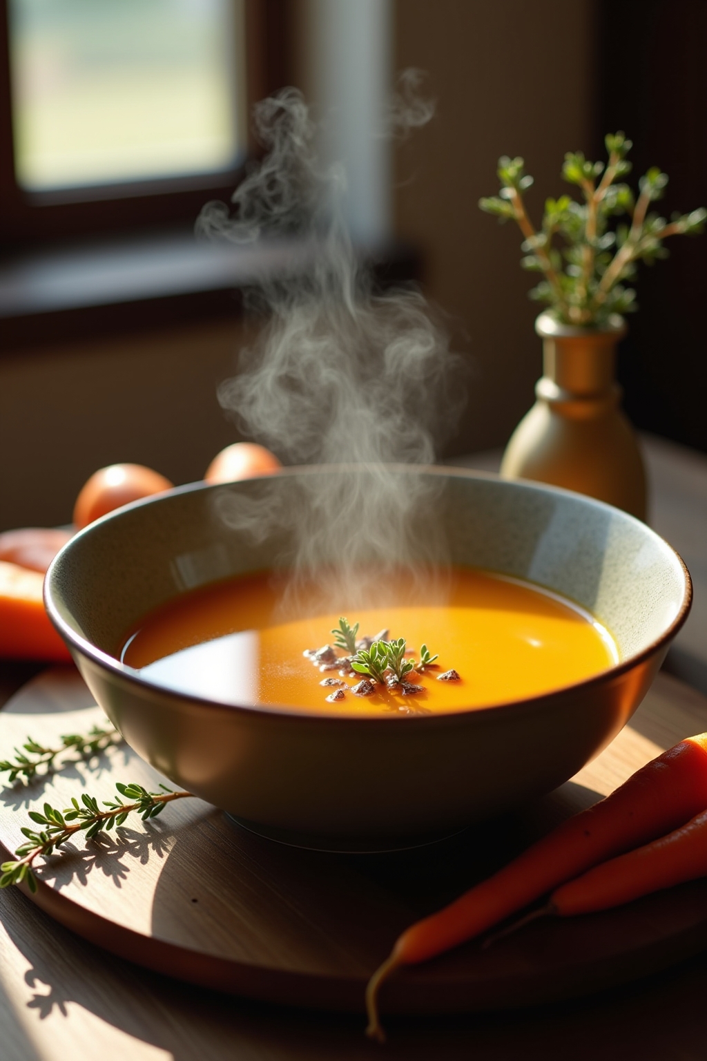 Imagine cozying up with a bowl of our Roasted Carrot Ginger Soup with Maple and Thyme, where sweet caramelized carrots meet the warmth of fresh ginger in perfect harmony. This soul-warming recipe elevates the classic carrot ginger soup by slow-roasting the carrots to intensify their natural sweetness, while a drizzle of maple syrup adds a sophisticated depth that perfectly balances the soup’s spicy notes. Fresh thyme infuses the broth with an earthy aroma that complements the vibrant orange hue, making this soup as visually stunning as it is delicious. The velvety texture comes from a quick blitz in your blender, creating a smooth, restaurant-quality finish without a drop of cream (though you can add some for extra richness). Whether you’re meal prepping for busy weeknights or impressing dinner guests, this nutritious soup packs a vitamin-rich punch while delivering complex flavors that taste like they took hours to develop. The best part? You can customize the consistency to your preference – thin it for a delicate first course or keep it thick for a satisfying main dish alongside crusty artisan bread. Ready in under an hour, this Roasted Carrot Ginger Soup with Maple and Thyme will quickly become your new favorite way to enjoy the humble carrot transformed into something truly extraordinary.