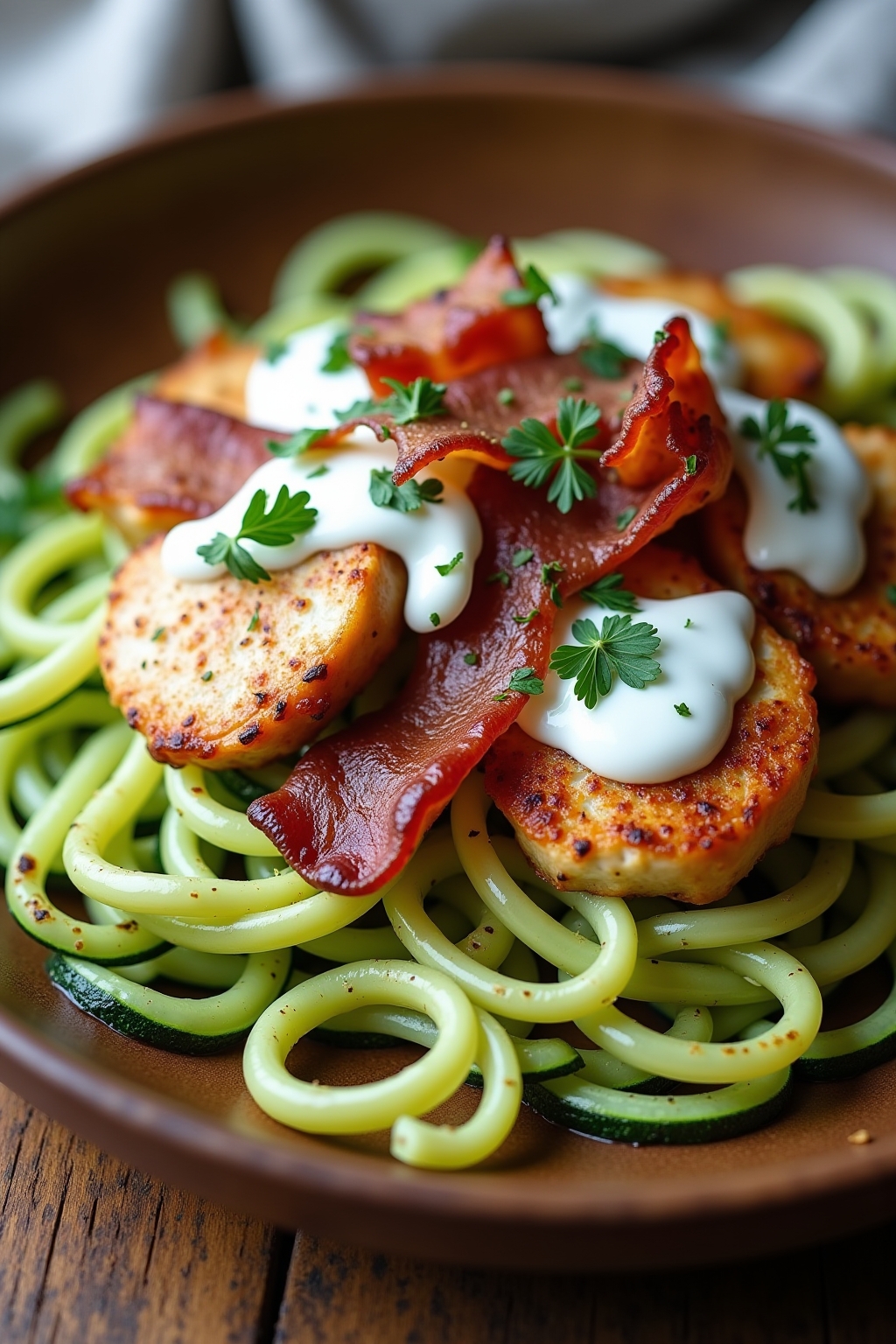 Gluten-Free Chicken Bacon Ranch Pasta with Zucchini Noodles