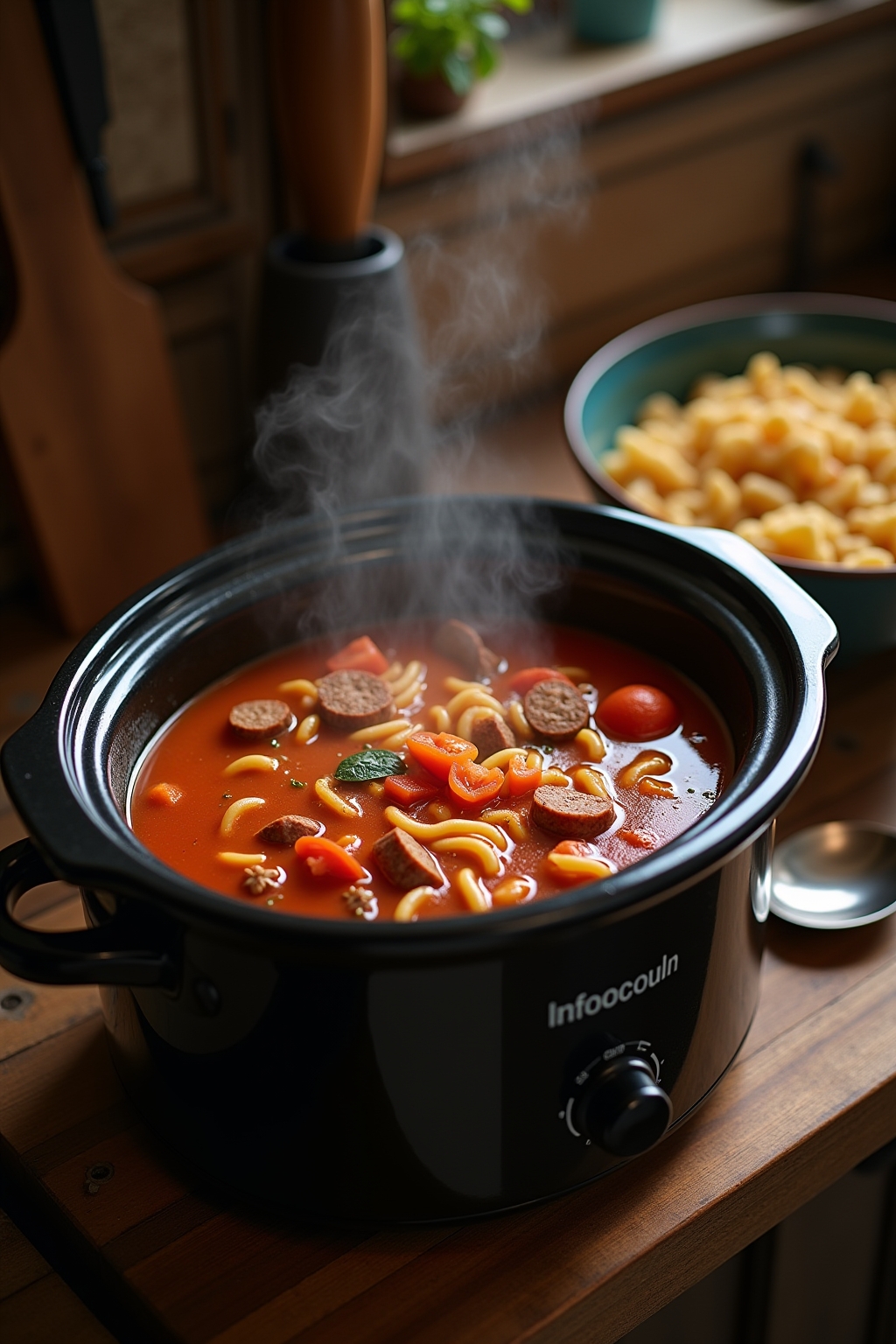 Slow Cooker Tomato Orzo Soup with Italian Sausage