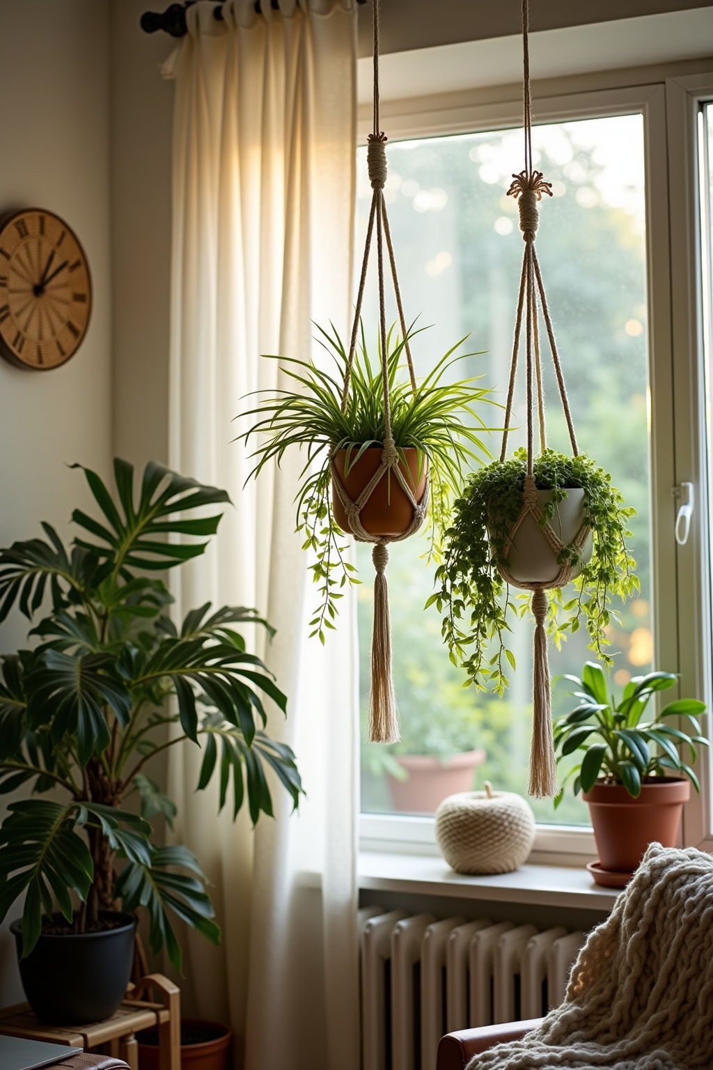 1. Eingangsbereich mit kleinen Makramee-Pflanzenhängern für einen einladenden ersten Eindruck