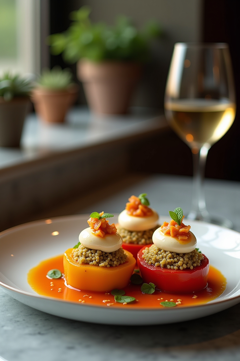 4. Deconstructed shopska salad with balsamic glaze and microgreens