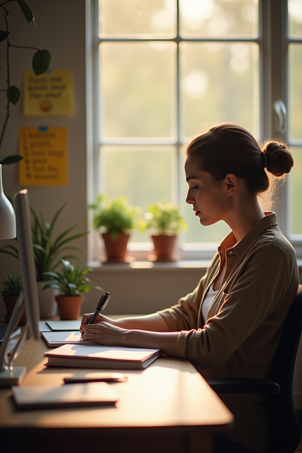 5. Written affirmations in visible workspace locations serve as constant reminders of professional goals and capabilities.