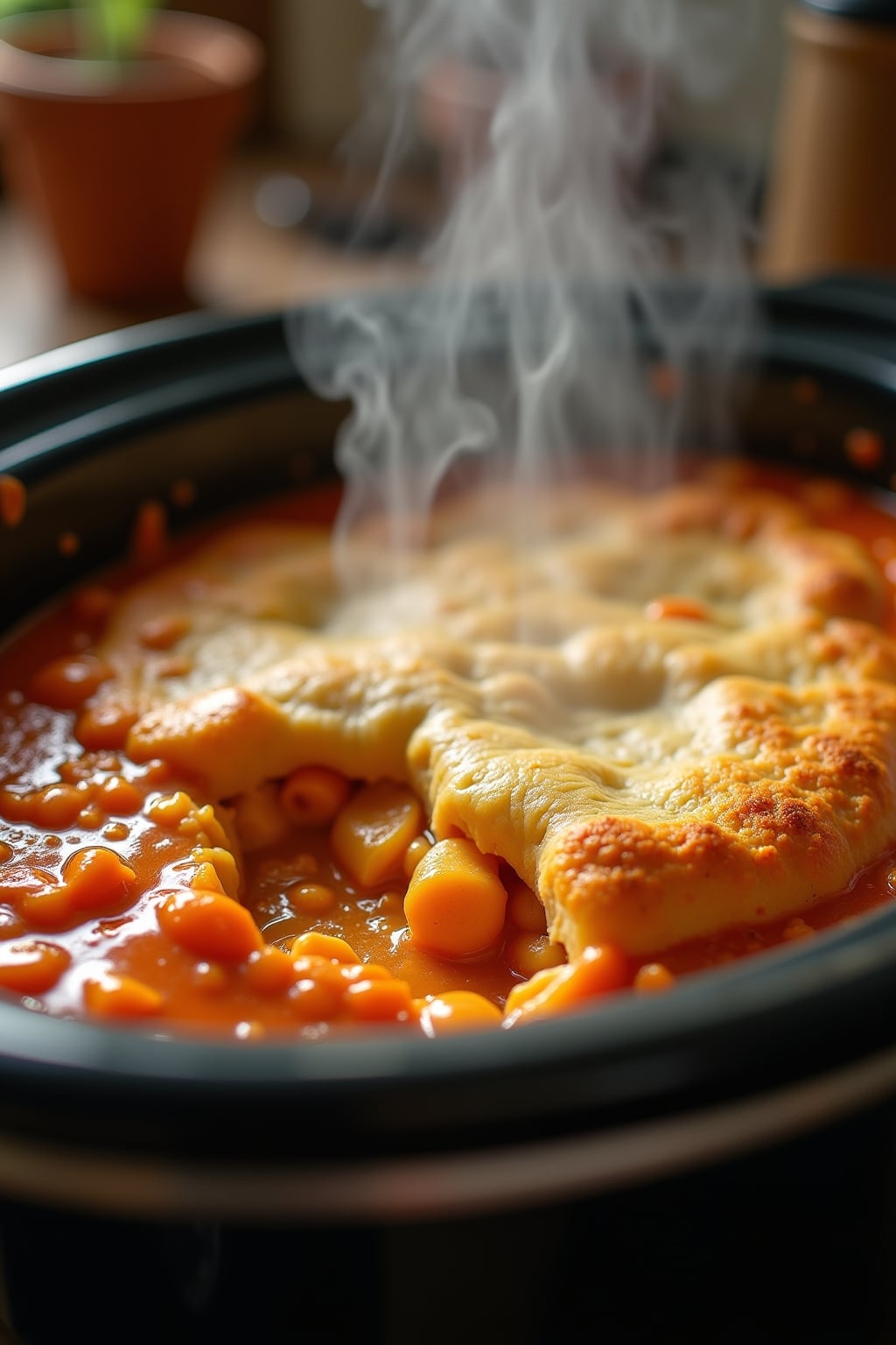 Satisfy your comfort food cravings with this bold and zesty Slow Cooker Buffalo Chicken Pot Pie Casserole that transforms the classic dish into a spicy sensation. Your busy schedule won’t stand in the way of a home-cooked meal when you can set this in your crockpot and return to a mouthwatering dinner that’s ready to serve. The creamy buffalo sauce adds a tangy kick that perfectly complements the tender shredded chicken and traditional pot pie vegetables. You’ll love how the buttery biscuit topping soaks up the flavorful sauce while creating that perfect contrast of textures in every bite. This crowd-pleasing casserole is perfect for game days, family dinners, or whenever you need a comforting meal with minimal effort. The slow cooking process allows the buffalo flavors to fully develop and infuse into the chicken and vegetables, creating a depth of flavor that can’t be achieved with quick-cooking methods. Best of all, you can easily adjust the spice level to suit your family’s preferences while still enjoying all the classic pot pie flavors you love.