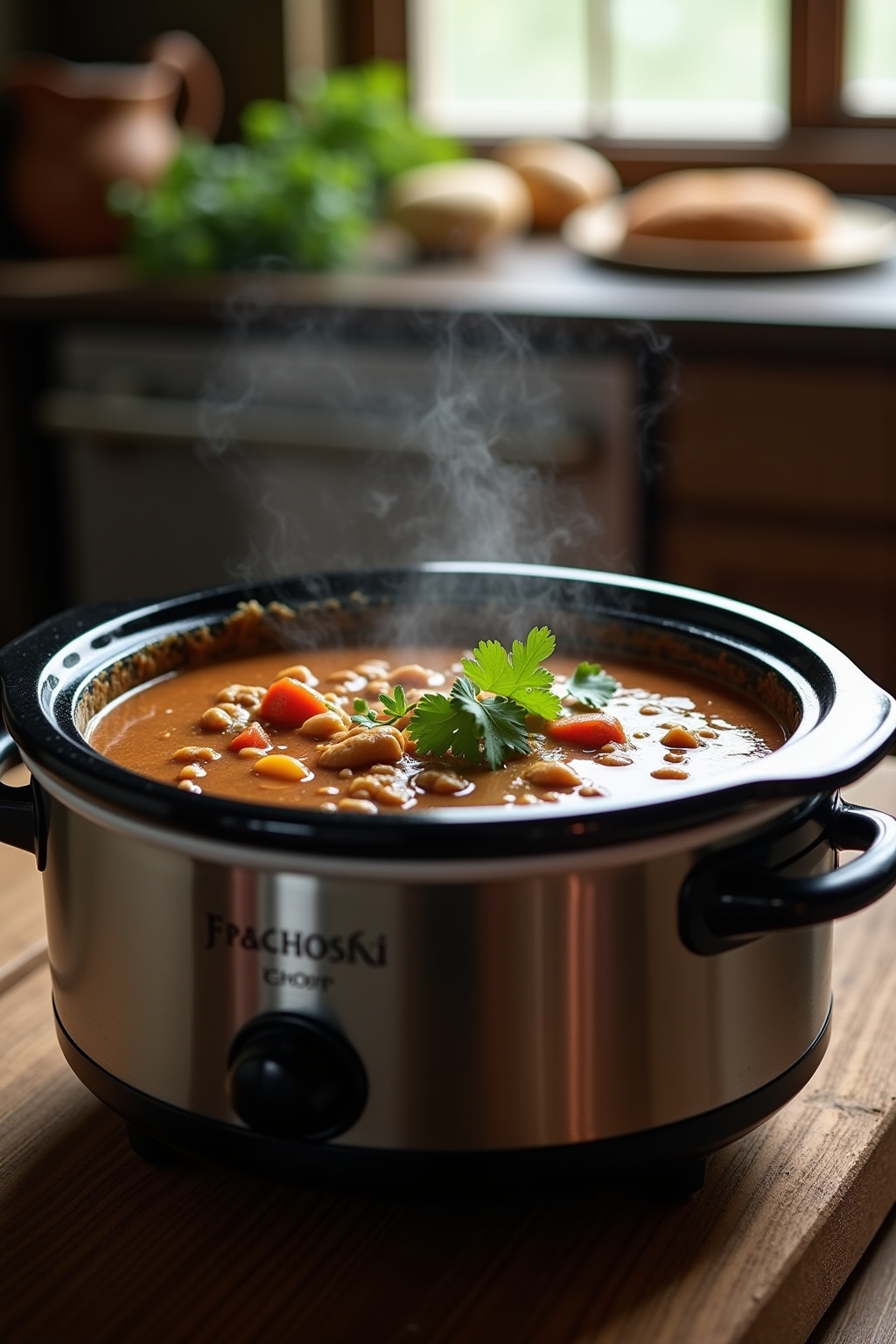 • Slow Cooker Cuban-Style Black Bean Chicken Soup with cilantro and cumin