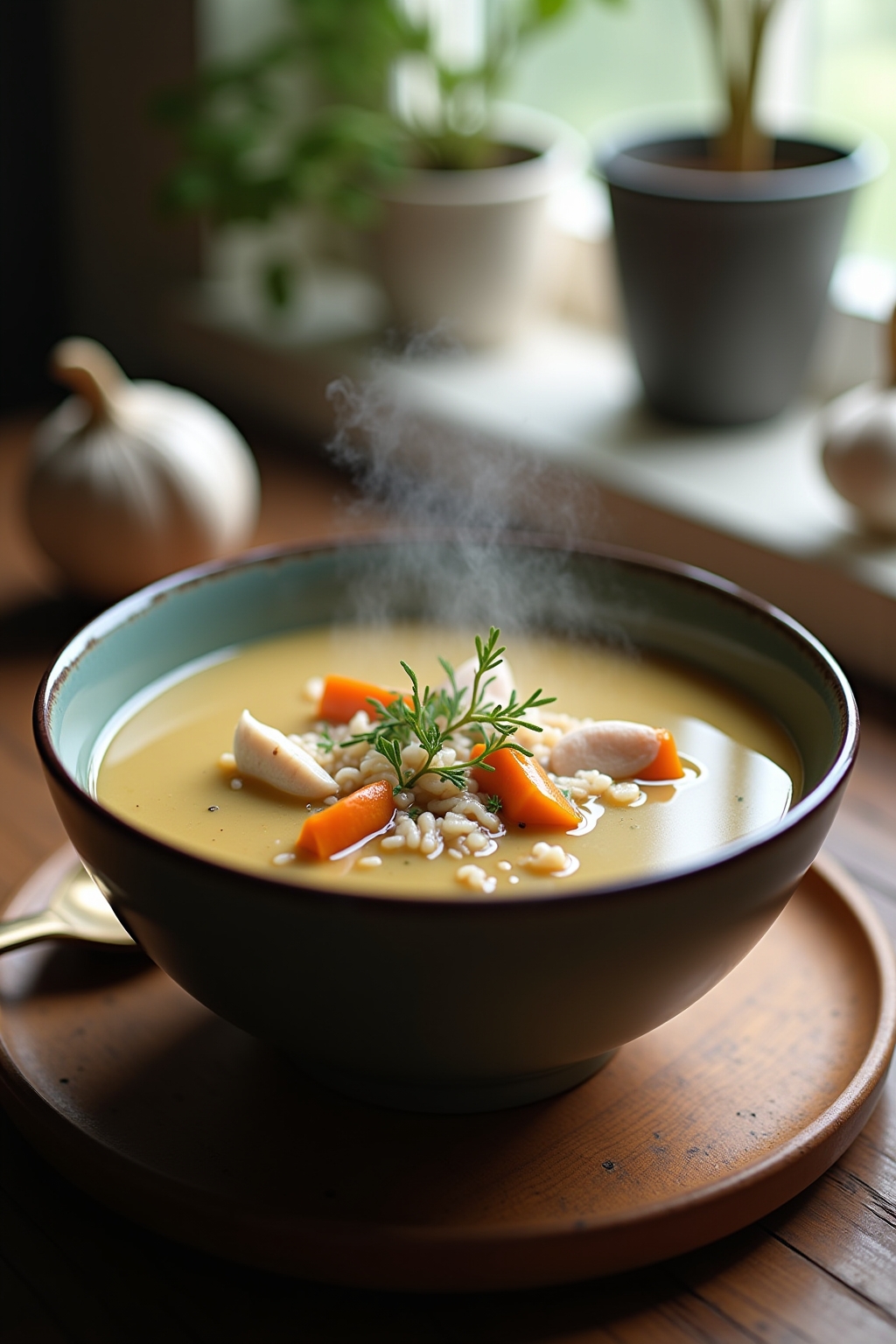 Creamy Turkey Wild Rice Soup Recipe with Roasted Garlic and Herbs