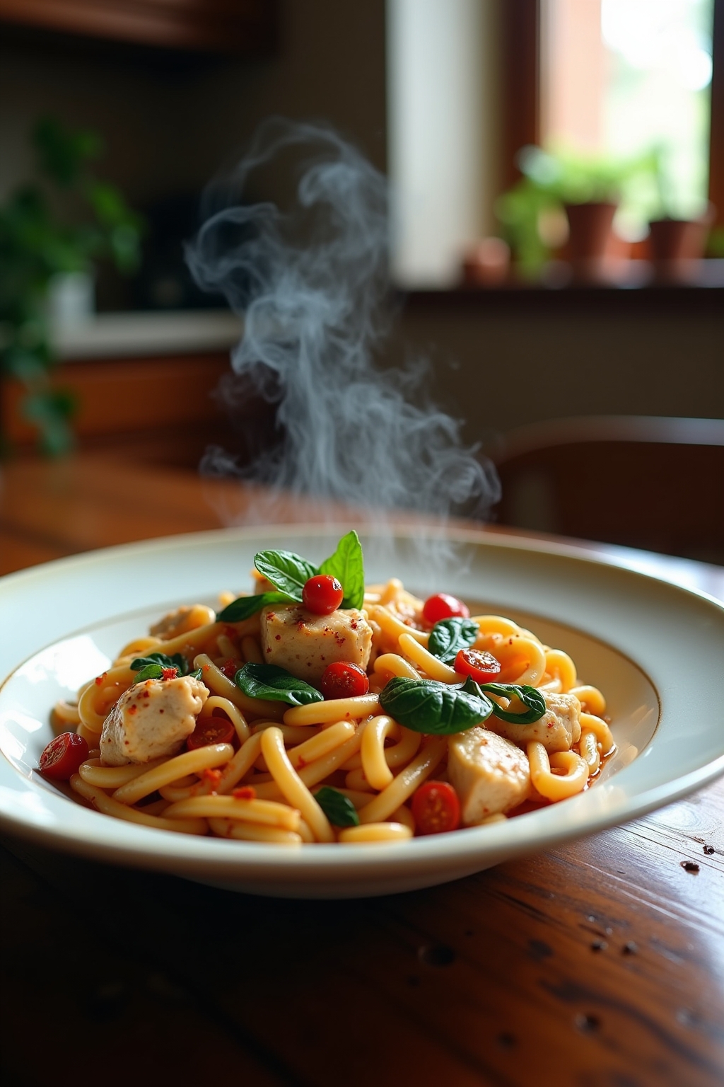 Spicy Creamy Tuscan Chicken Pasta with Red Pepper Flakes