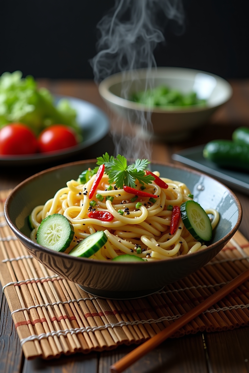 Spicy Asian-Inspired Cucumber Pasta Salad Recipe with Sesame Dressing