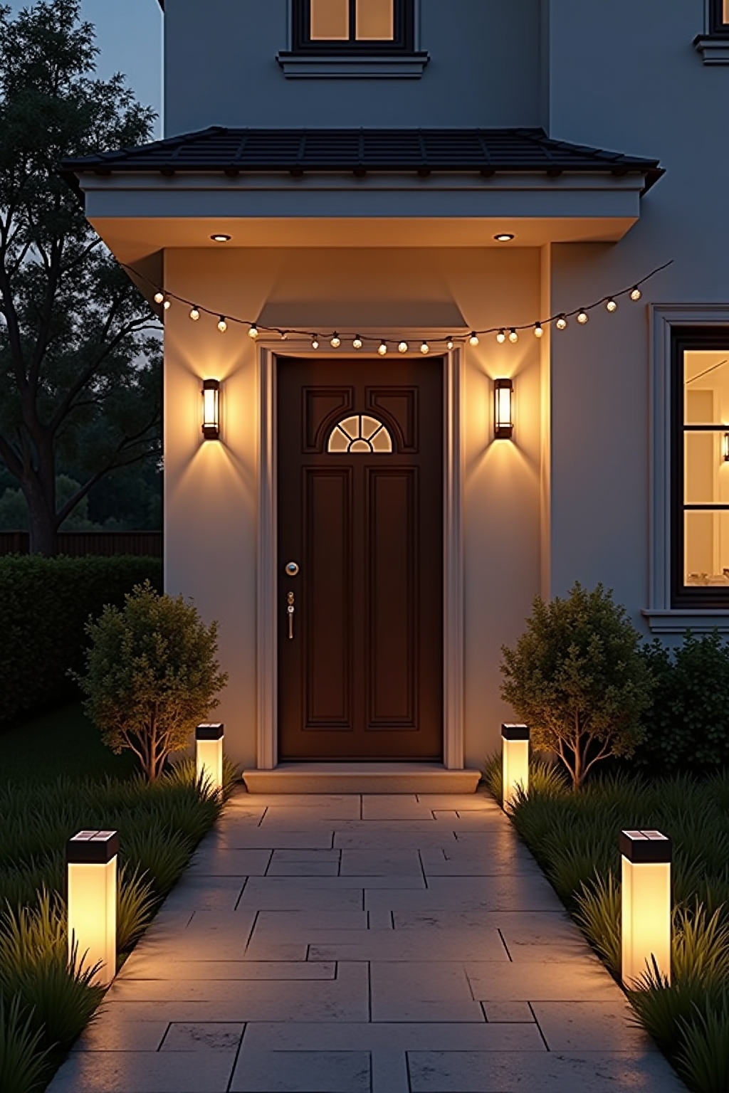 • Wandleuchten in symmetrischer Anordnung neben der Haustür