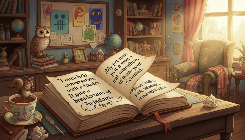 Um selbst solche Zitate zu entwickeln, übe dich in kreativem Denken, beobachte den Alltag genau und suche nach unerwarteten Verbindungen. Spiele mit Worten, verdrehe bekannte Redewendungen oder übertreibe alltägliche Gedanken ins Absurde. Selbstironie ist ebenfalls ein guter Ansatzpunkt.