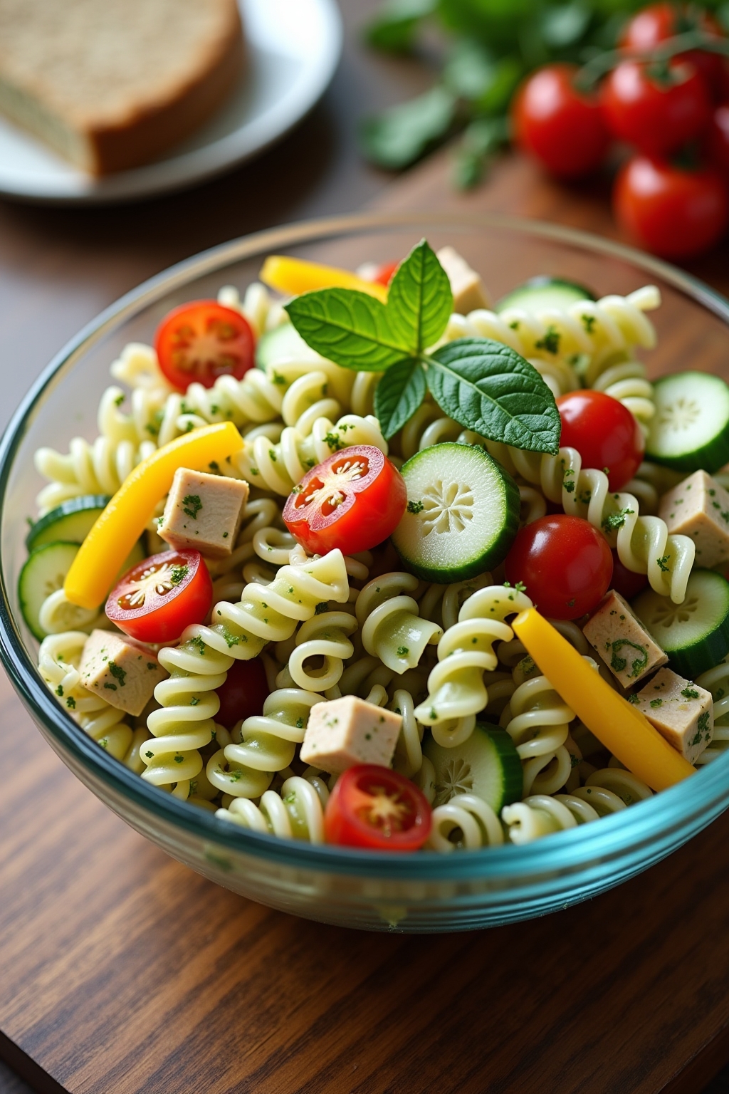 No-Cook Pesto Pasta Salad with Diced Chicken