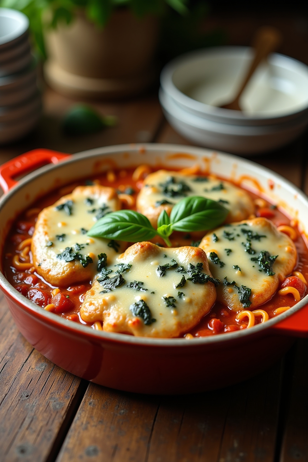 Are you craving a comforting, cheesy meal without the hassle of multiple dishes and complicated steps? This One-Pot Italian Chicken Parmesan Pasta Bake is your answer to a delicious weeknight dinner that combines all the flavors of traditional Chicken Parmesan with the convenience of a dump-and-bake recipe. You’ll love how the pasta cooks right in the sauce, absorbing all those amazing Italian seasonings while the chicken gets tender and juicy. The melty mozzarella and Parmesan cheese create that irresistible golden crust that makes everyone dive in for seconds. Best of all, you won’t believe how simple it is to throw together – just layer your ingredients in a casserole dish and let your oven do the work! With minimal prep and only one dish to clean afterward, this recipe might just become your new go-to for busy evenings when you want something hearty and impressive without the effort.