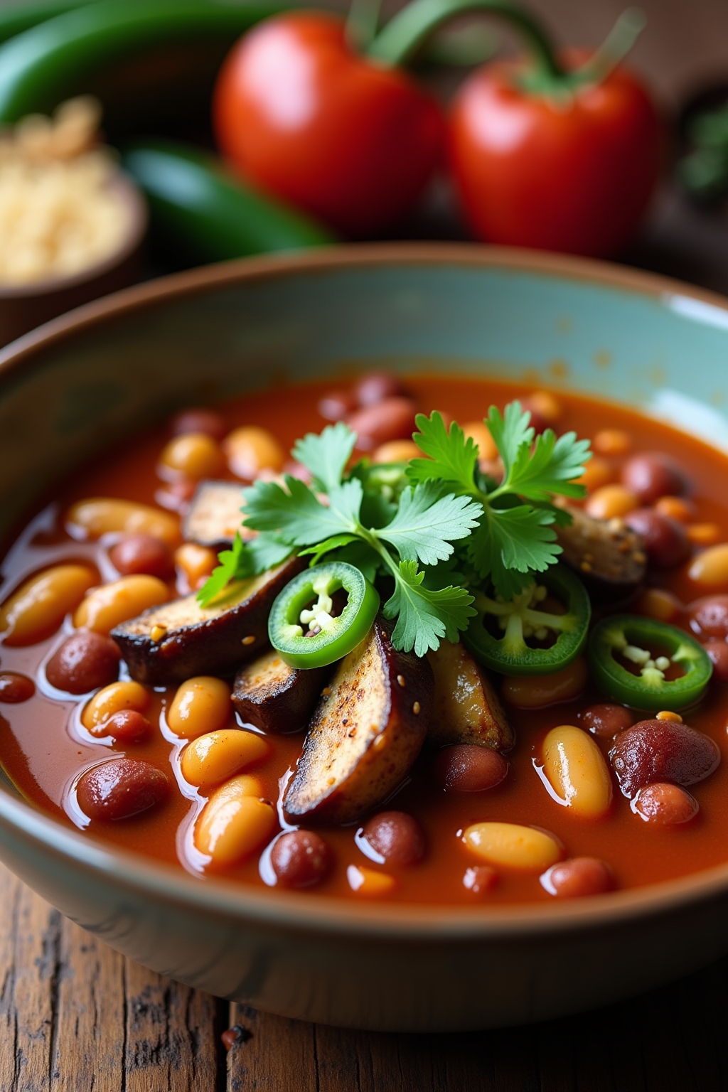 1. Smoky Eggplant and Black Bean Chili with Chipotle Peppers