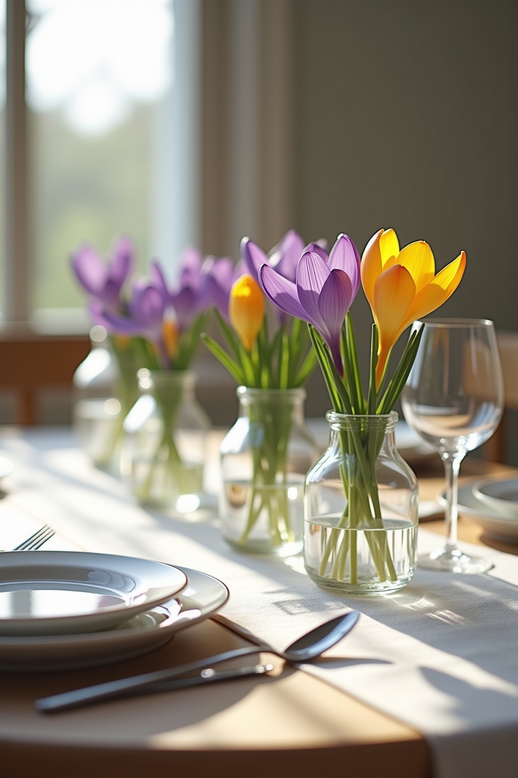 Einfache Tischdeko mit Krokussen für besondere Anlässe