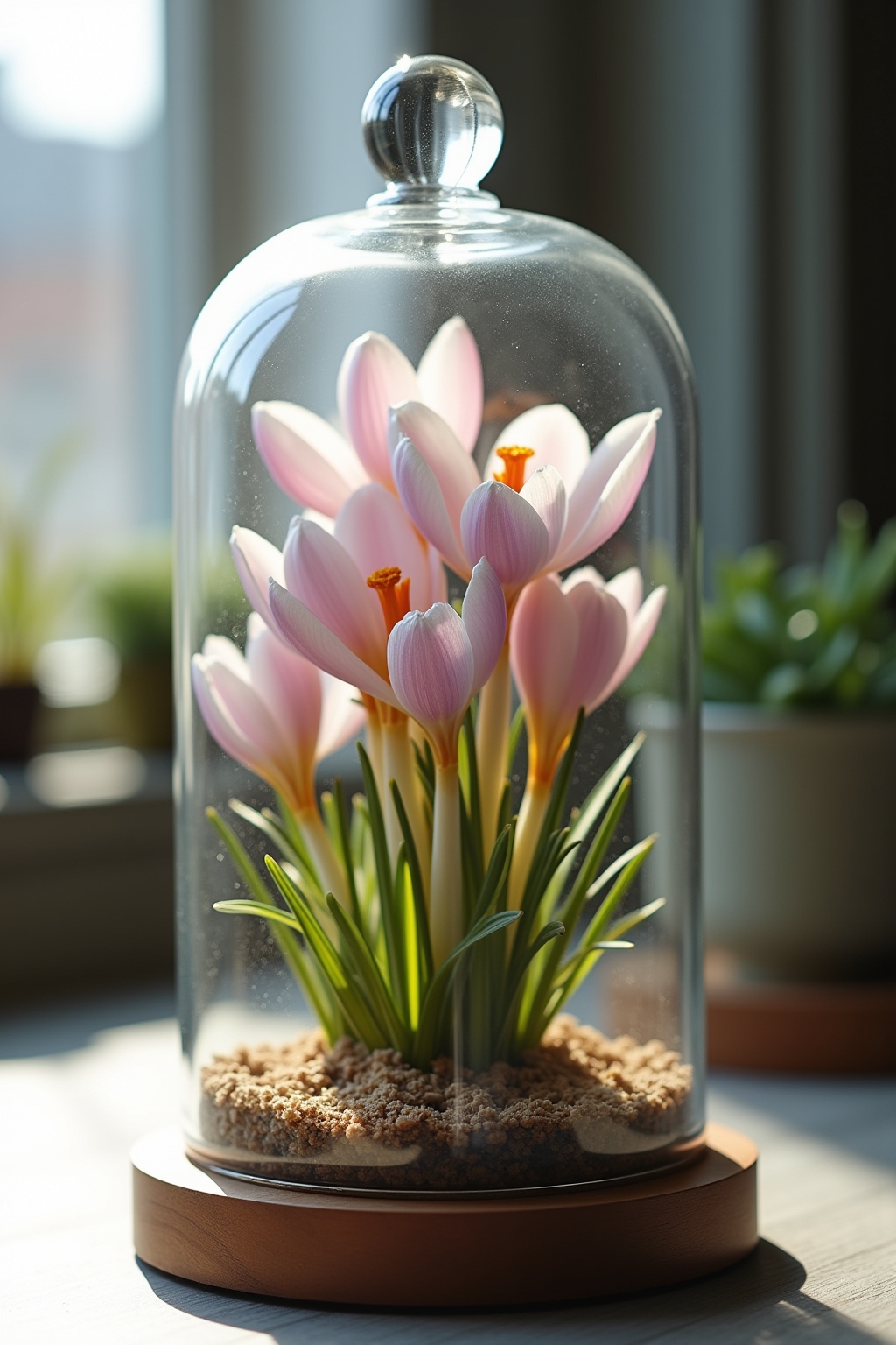 5. Miniatur-Frühlingslandschaft mit Krokussen in einer Glasglocke