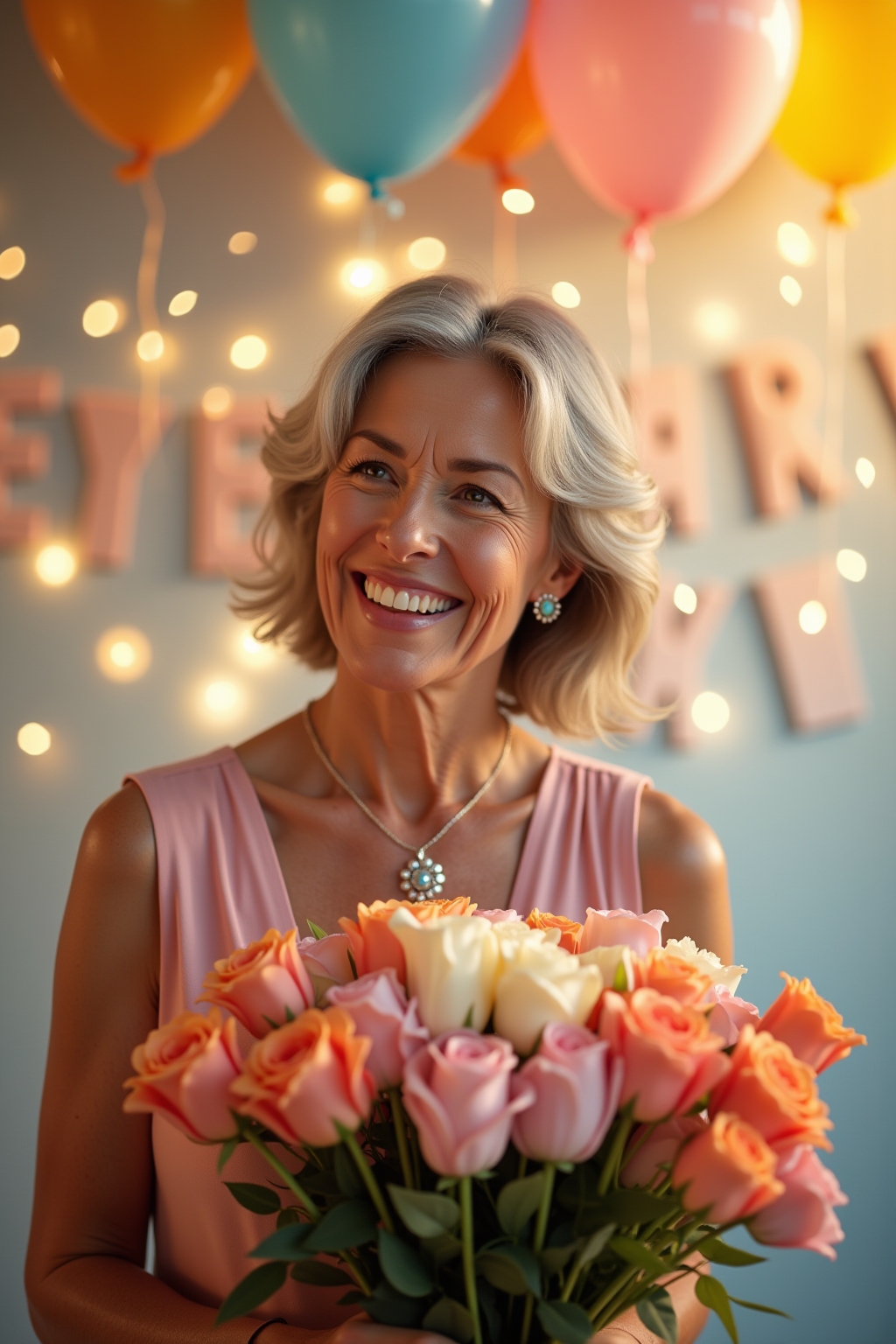 1. Elegante Blumenarrangements mit goldener „Happy Birthday“-Schrift