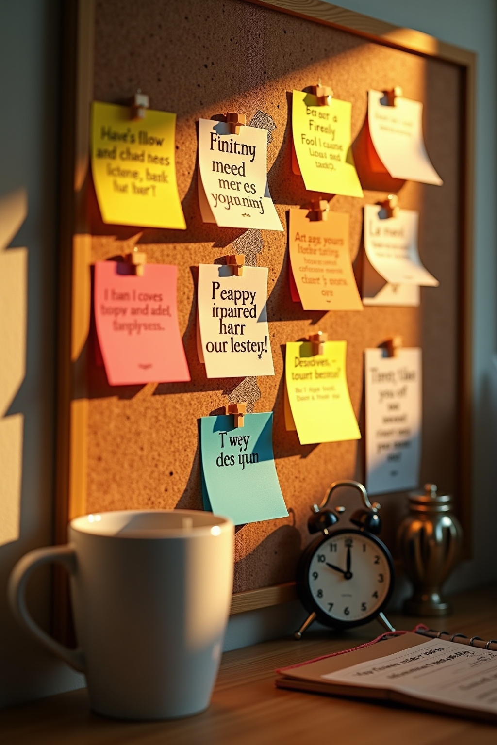 9. Creating a rotating quote board near your home coffee station serves as a visual anchor for establishing a consistent morning mindfulness practice.