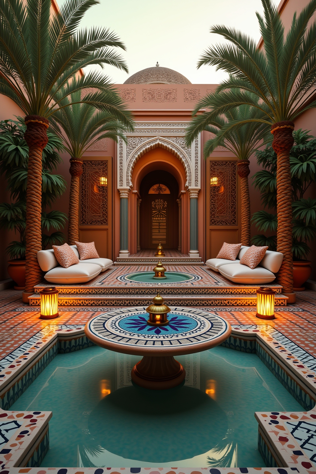 Farbpaletten und Materialien für eine authentische arabische Gartendekoration
