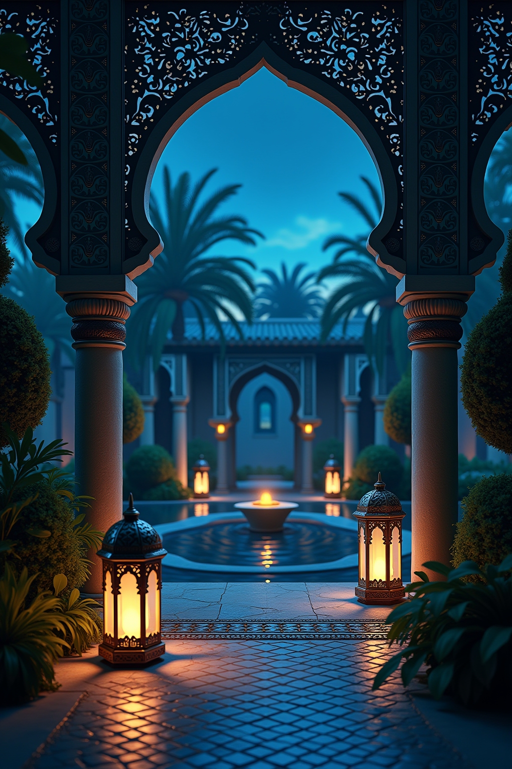 Beleuchtungsideen für den arabisch gestalteten Garten bei Nacht