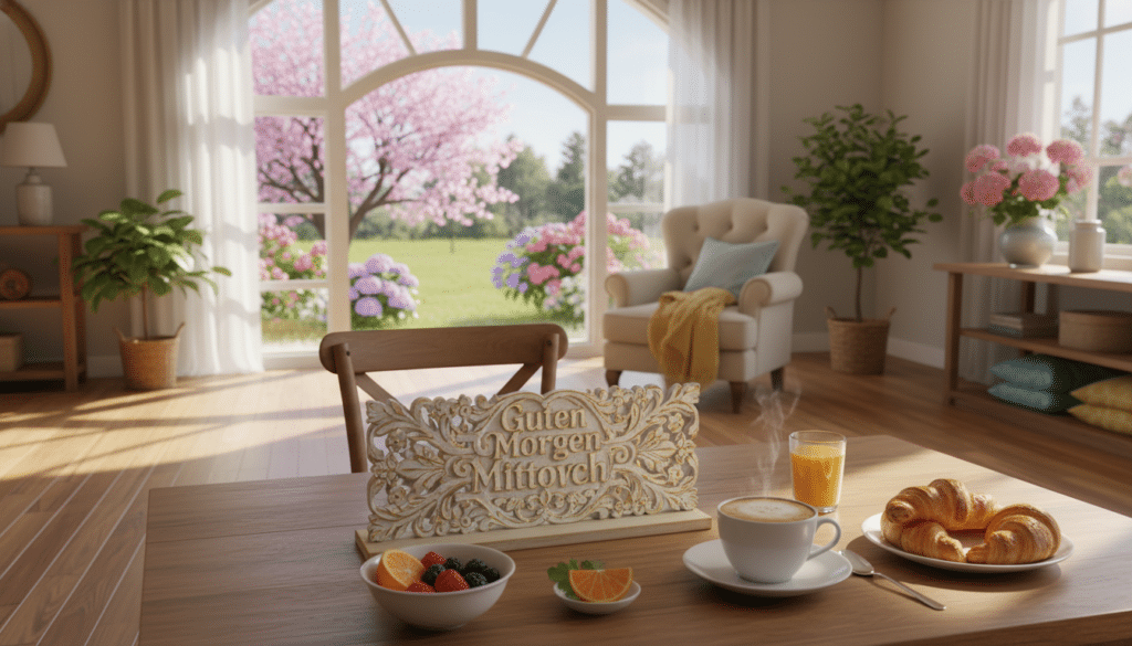 - „Guten Morgen, mein Lieber/meine Liebe! Ich wünsche dir einen strahlenden Mittwoch, voller Freude und Sonnenschein.“