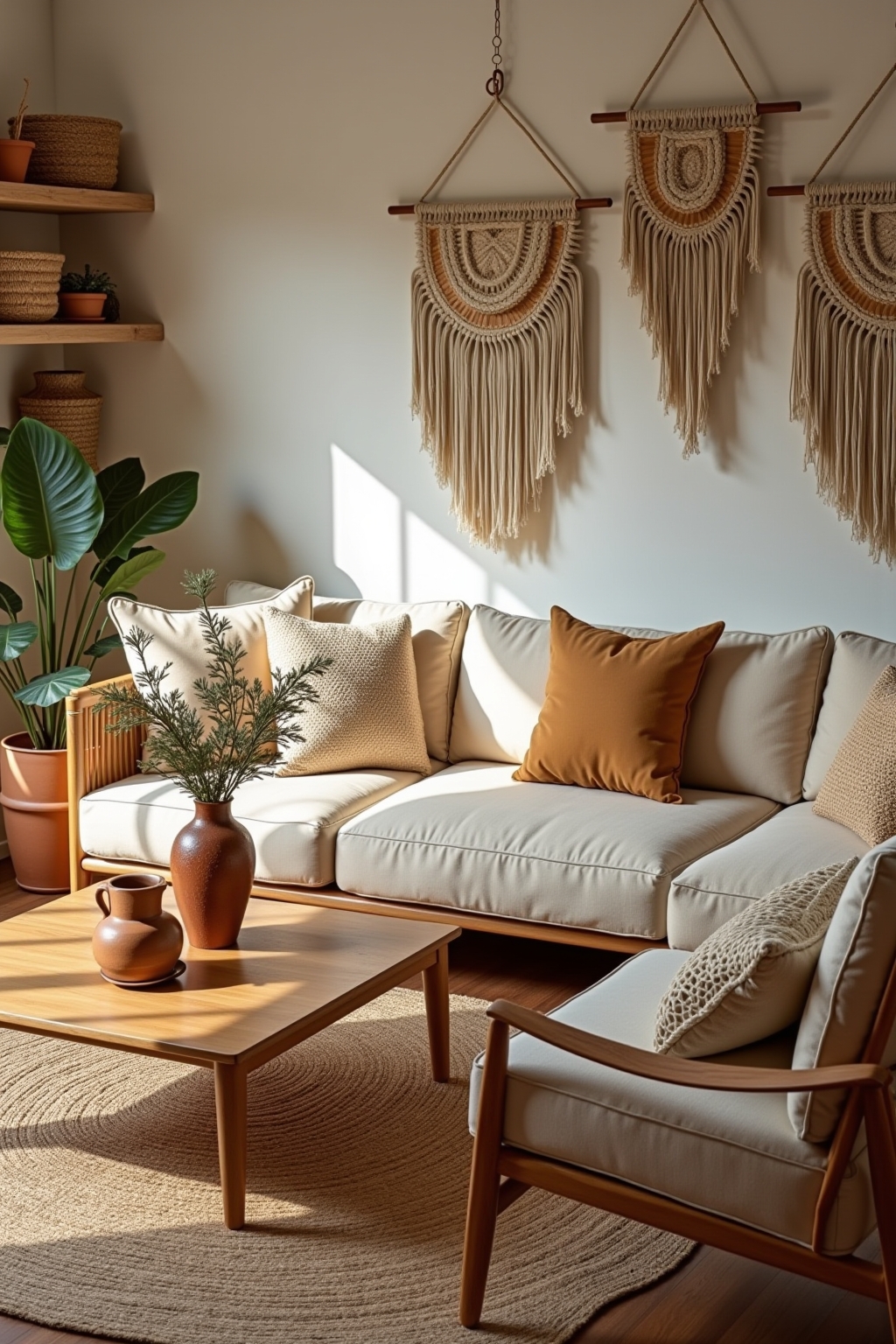 5. Macramé wall hangings or plant holders for texture variation