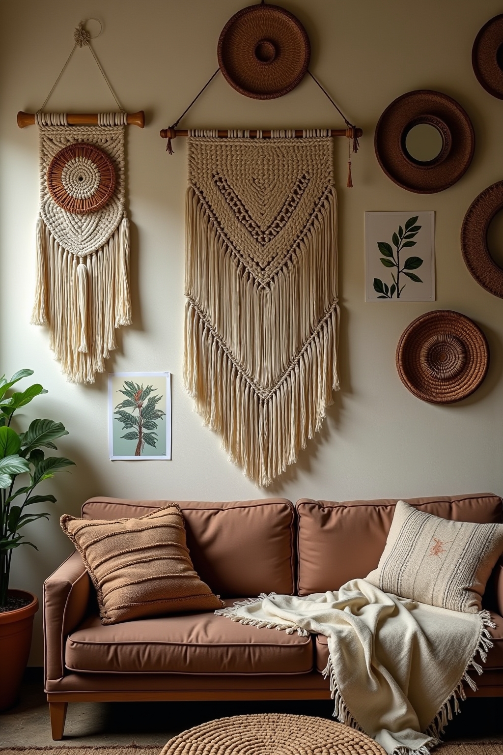 3. Incorporate macramé wall hangings or plant holders