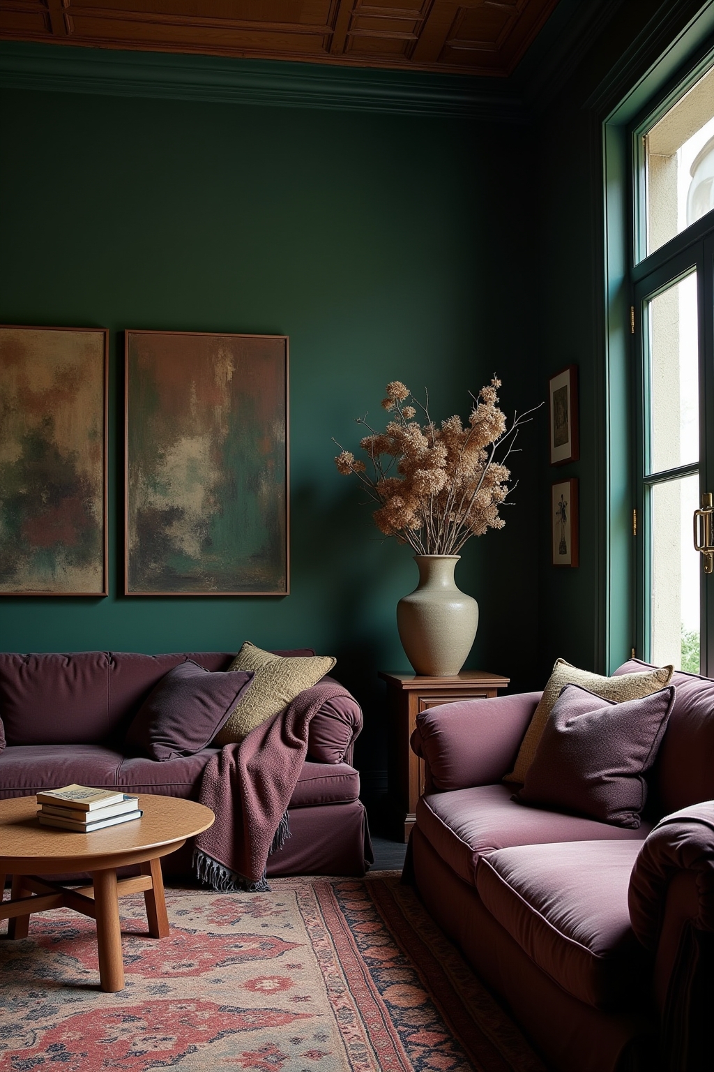 3. Forest green and plum purple for nature-inspired depth and richness
