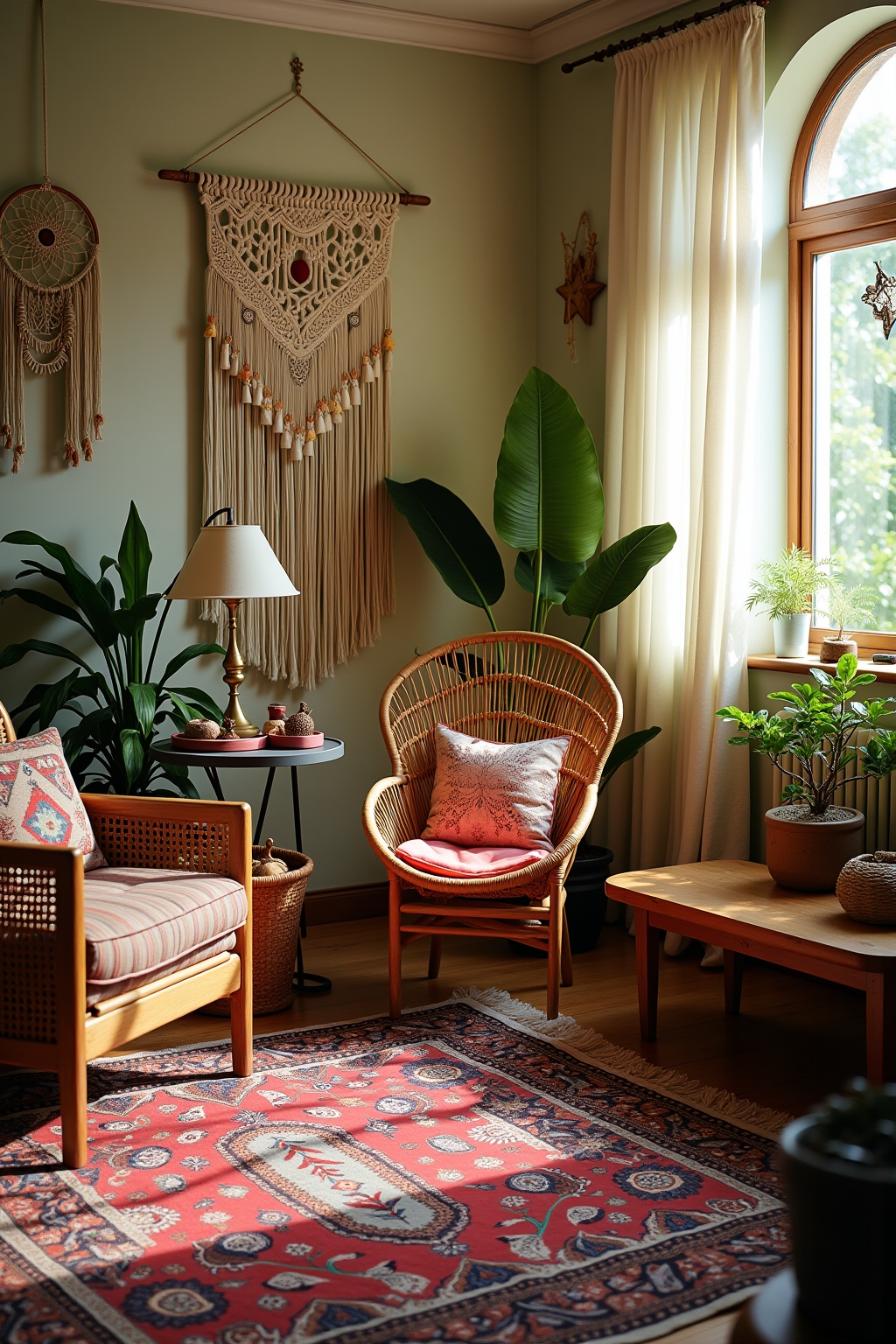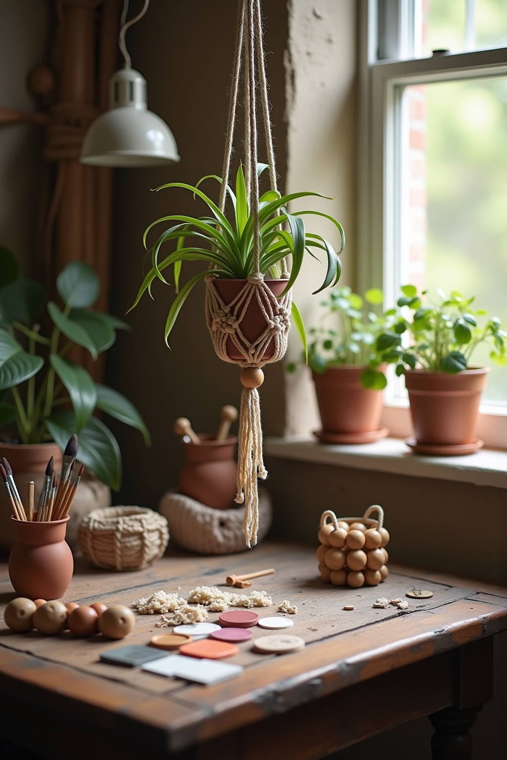 1. Incorporate macramé wall hangings or plant holders for texture and artisanal appeal