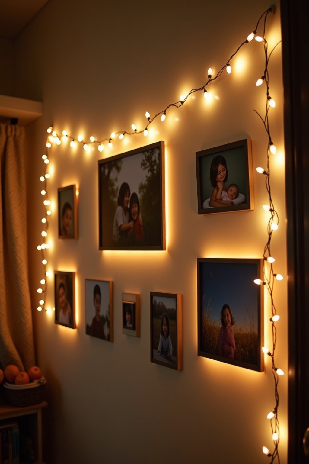 4. Batteriebetriebene Mini-Lichterketten zwischen den Fotos für eine märchenhafte Atmosphäre
