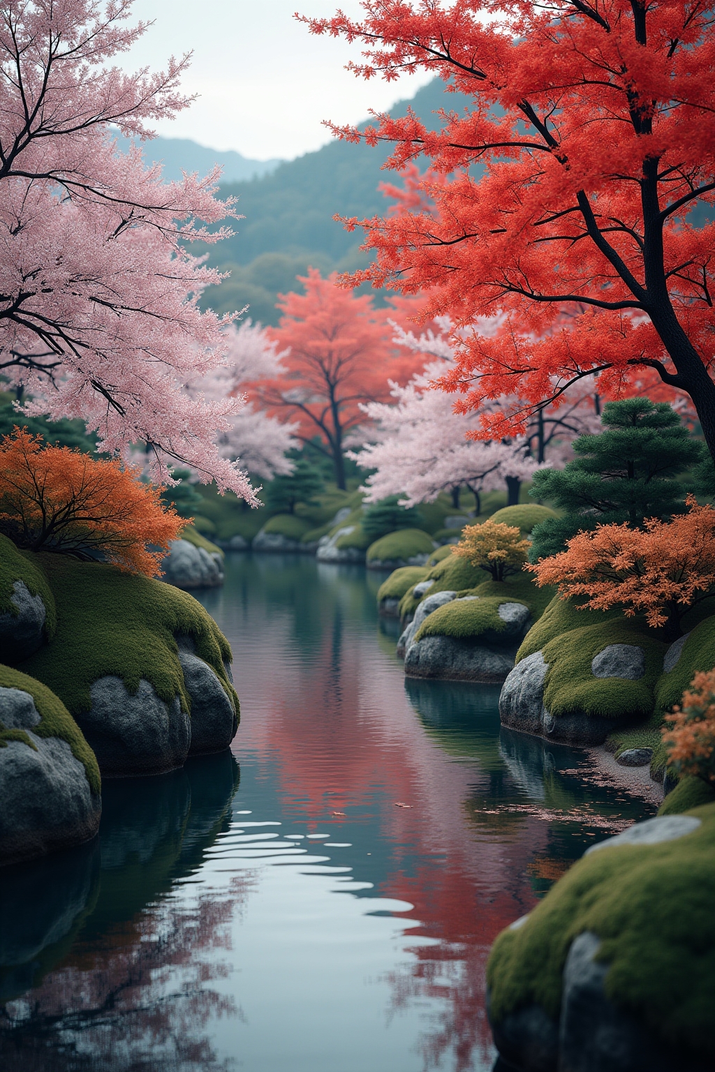 – Azaleen und japanische Ahorne für saisonale Farbakzente und visuelle Dynamik