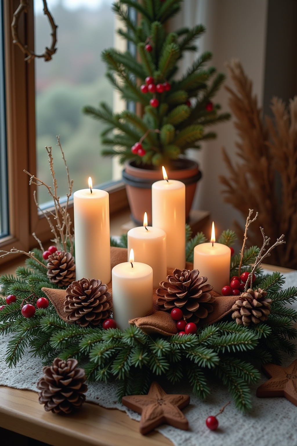 1. Adventskranz aus Tannenzweigen und natürlichen Materialien für deinen Gartentisch