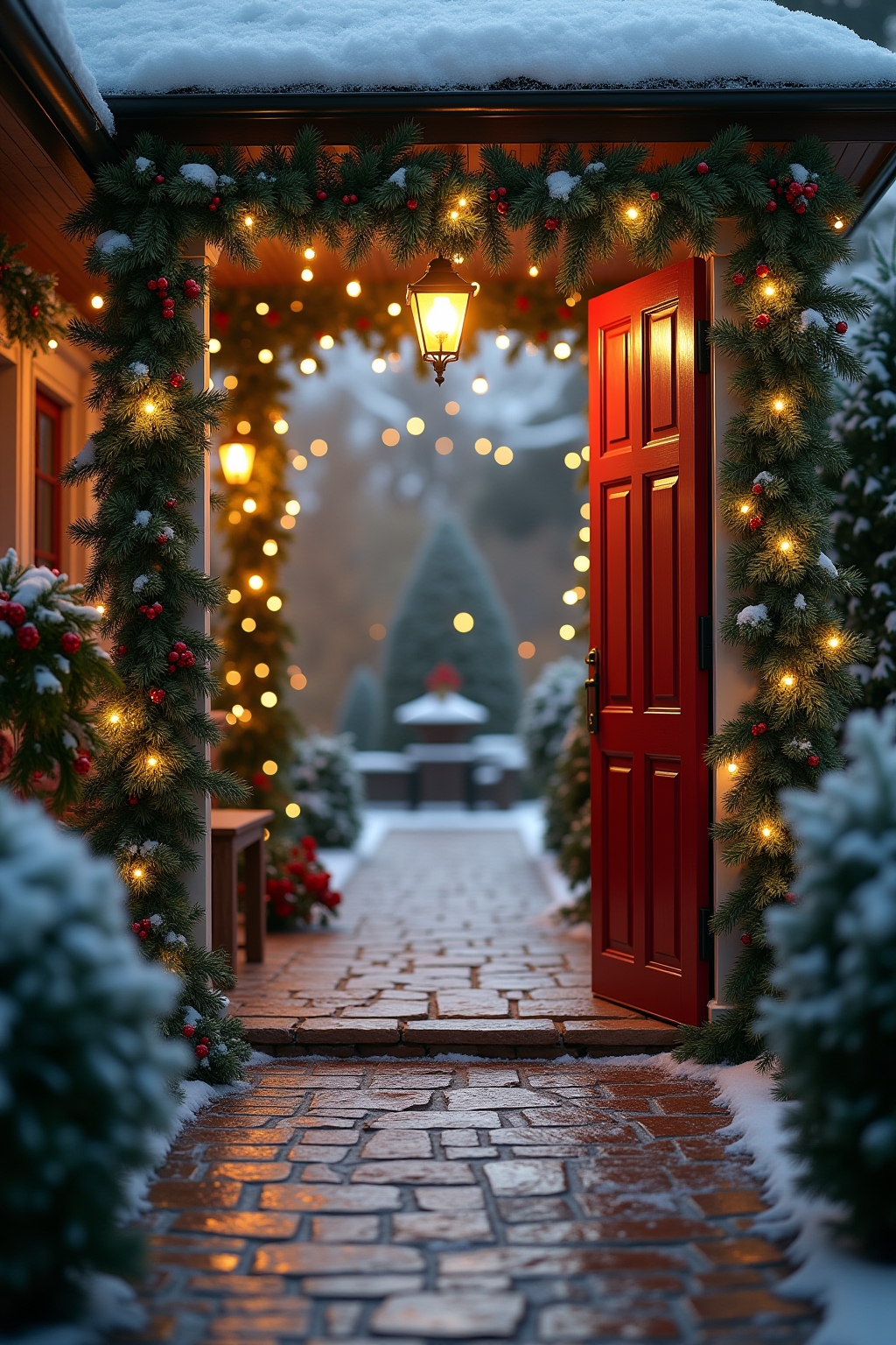 Harmonisches Gesamtkonzept: Klassische Gartendekoration vom Eingang bis zur Terrasse im Advent