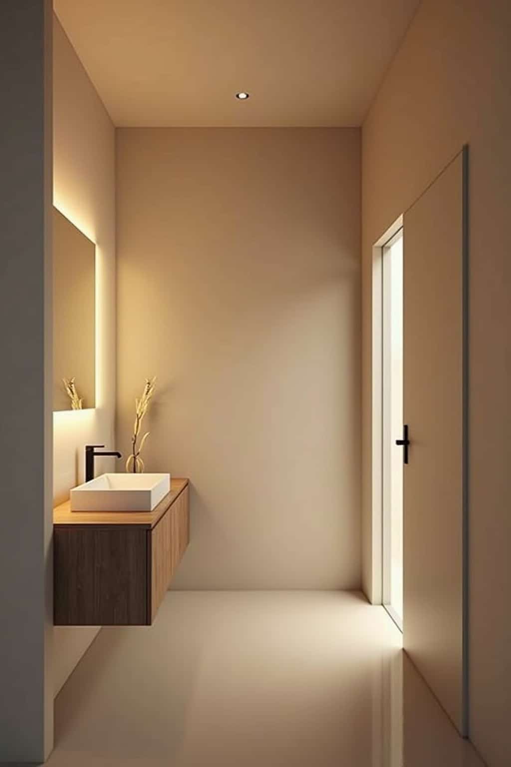 Beim Einrichten deines Bades vertraue auf dein Gefühl dafür, wann genug Dekoration vorhanden ist. Experimentiere mit dem Entfernen von Gegenständen statt mit dem Hinzufügen und beobachte, wie sich die Raumwirkung verändert. Oft ist der Moment, in dem du einen Gegenstand zu viel wegnimmst, genau der Punkt, an dem der Raum seine perfekte Balance zwischen Leere und Präsenz findet. Entdecke im nächsten Abschnitt, wie die richtige Beleuchtung deine minimalistische Badgestaltung vervollständigen kann und eine Atmosphäre tiefer Ruhe erzeugt.