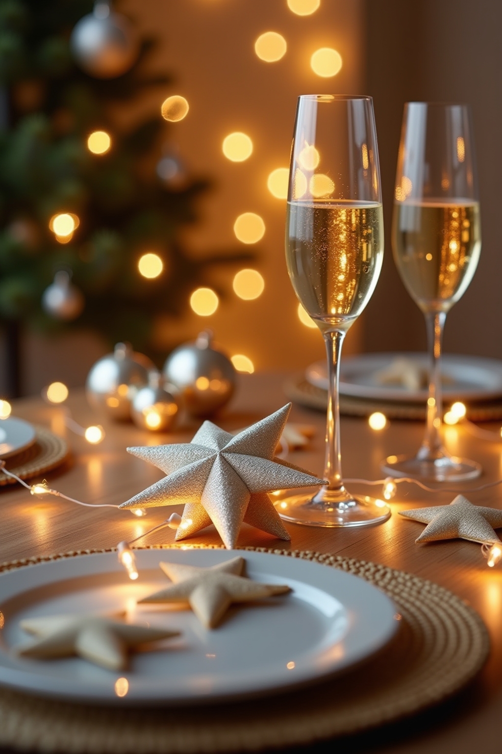 1. Farblich abgestimmte LED-Lichterketten in Silber und Gold für einen eleganten Neujahrs-Look