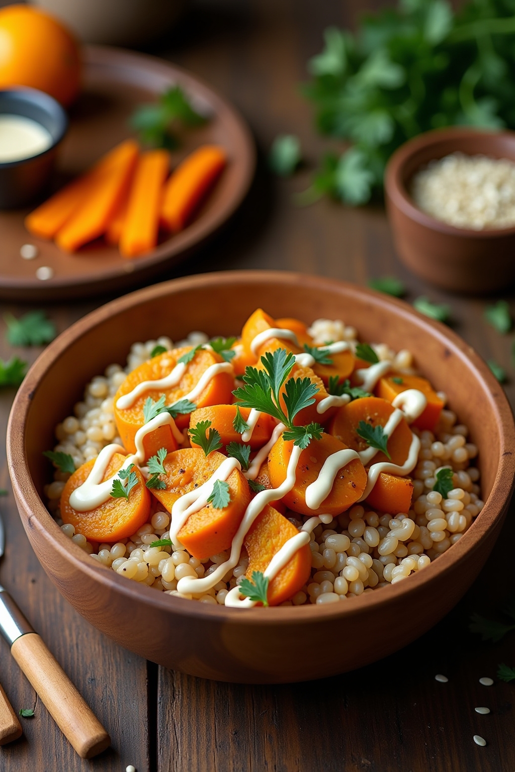 Have you been searching for a hearty, nutritious meal that’s both satisfying and packed with fall flavors? This Creamy Tahini Roasted Butternut Squash Barley Bowl is about to become your new favorite comfort food without the guilt. The nutty flavor of barley perfectly complements the caramelized sweetness of roasted butternut squash, while the creamy tahini dressing ties everything together with its rich, earthy notes. You’ll love how the tender squash cubes develop a slightly crisp exterior while maintaining their soft, velvety interior—creating a delightful textural contrast in every bite. What makes this recipe truly special is how the warm barley soaks up the tahini dressing, transforming into a creamy, satisfying base that’ll keep you full for hours. This nutrient-dense bowl is incredibly versatile, allowing you to customize with seasonal vegetables or whatever you have on hand. Whether you’re meal prepping for busy weekdays or looking for an impressive yet easy dinner option, this grain bowl delivers restaurant-quality flavor with minimal effort.
