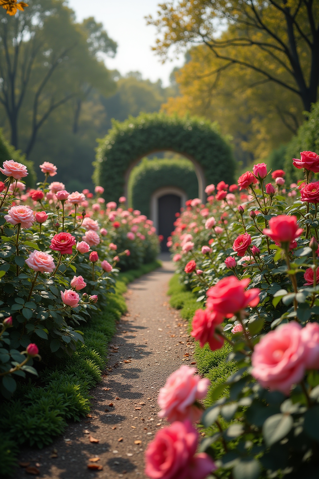 1. Verwendung klarer geometrischer Formen und symmetrischer Beete für Rosenpflanzungen