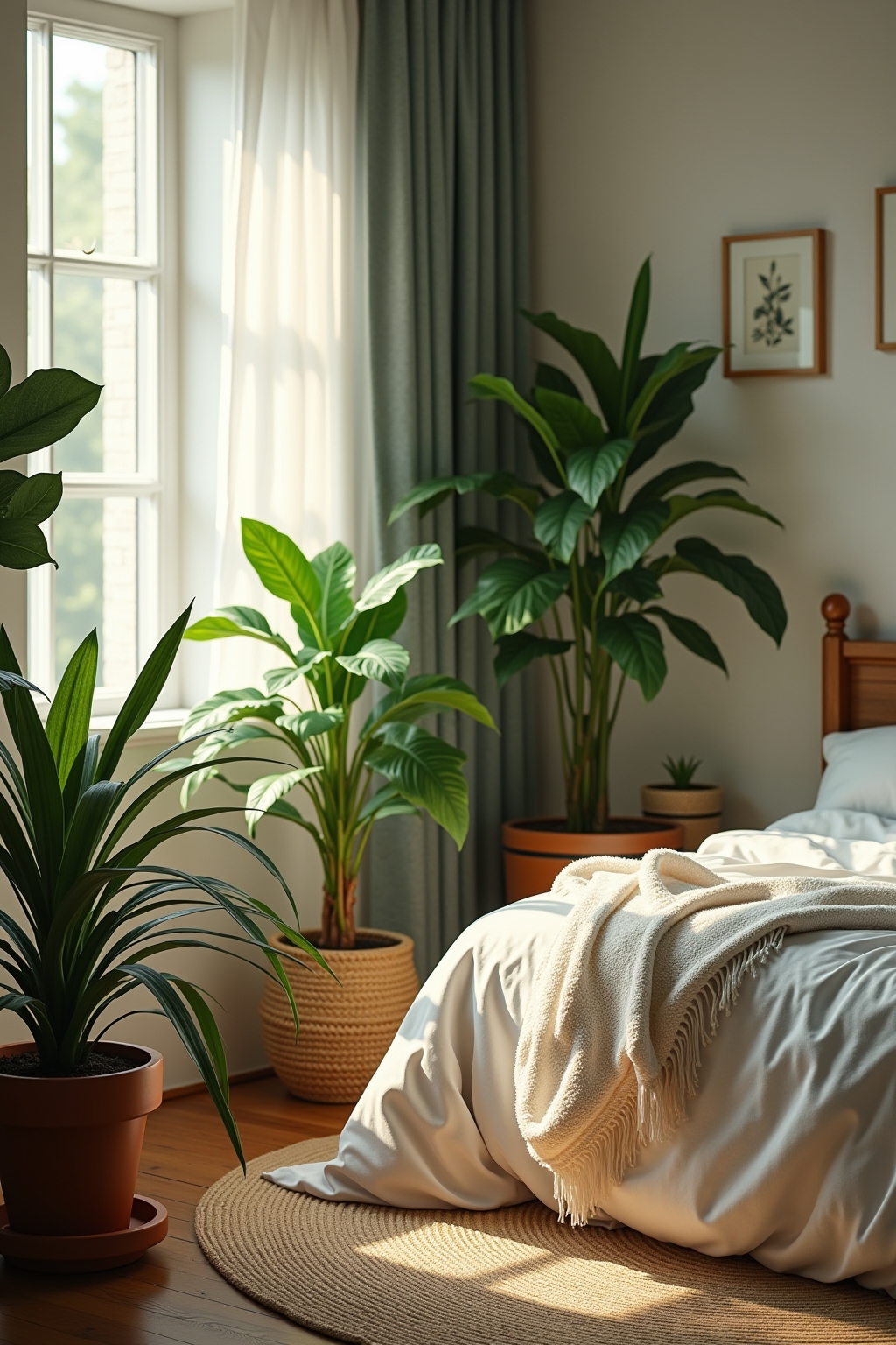 Wenn du nach natürlichen Elementen suchst, die Ruhe in dein Schlafzimmer bringen, sind Pflanzen die perfekte Wahl für eine entspannende Atmosphäre. Grünpflanzen verbessern nachweislich die Luftqualität, indem sie Schadstoffe filtern und den Sauerstoffgehalt erhöhen, was deinen Schlaf positiv beeinflussen kann. Die sanften Grüntöne wirken beruhigend auf das Nervensystem und helfen dir, den Stress des Tages abzubauen, sobald du dein Schlafzimmer betrittst. Einige Pflanzenarten, wie Lavendel oder Jasmin, verströmen zudem einen angenehmen Duft, der schlaffördernd wirkt und für süße Träume sorgen kann. Bei der Auswahl der richtigen Pflanzen für dein Schlafzimmer solltest du auf pflegeleichte Sorten setzen, die auch mit wenig Licht gut zurechtkommen und keine übermäßige Pflege benötigen. Mit der richtigen Positionierung auf Fensterbänken, Nachttischen oder in hängenden Ampeln werden die Pflanzen zu echten Blickfängern, die dein Schlafzimmer in eine grüne Wohlfühloase verwandeln. Achte jedoch darauf, dass du nicht zu viele Pflanzen in deinem Schlafraum platzierst, da dies den minimalistischen, ruhigen Charakter stören könnte.