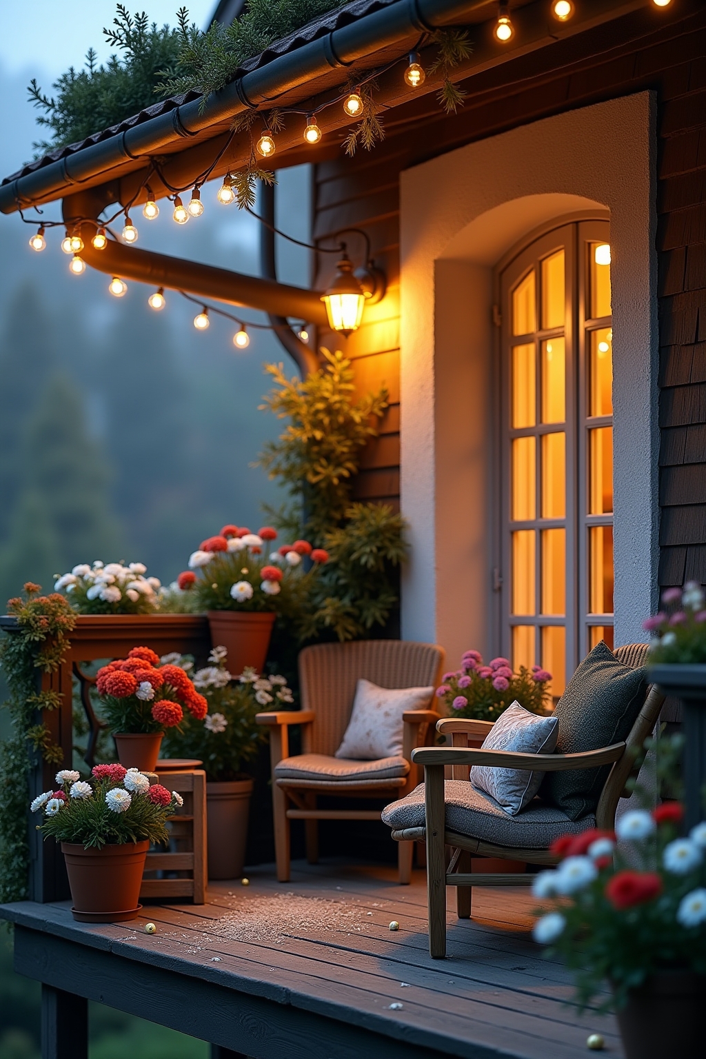 1. Lichterketten mit kleinen LED-Lämpchen zum Aufhängen entlang der Balkonbrüstung oder als Baldachin
