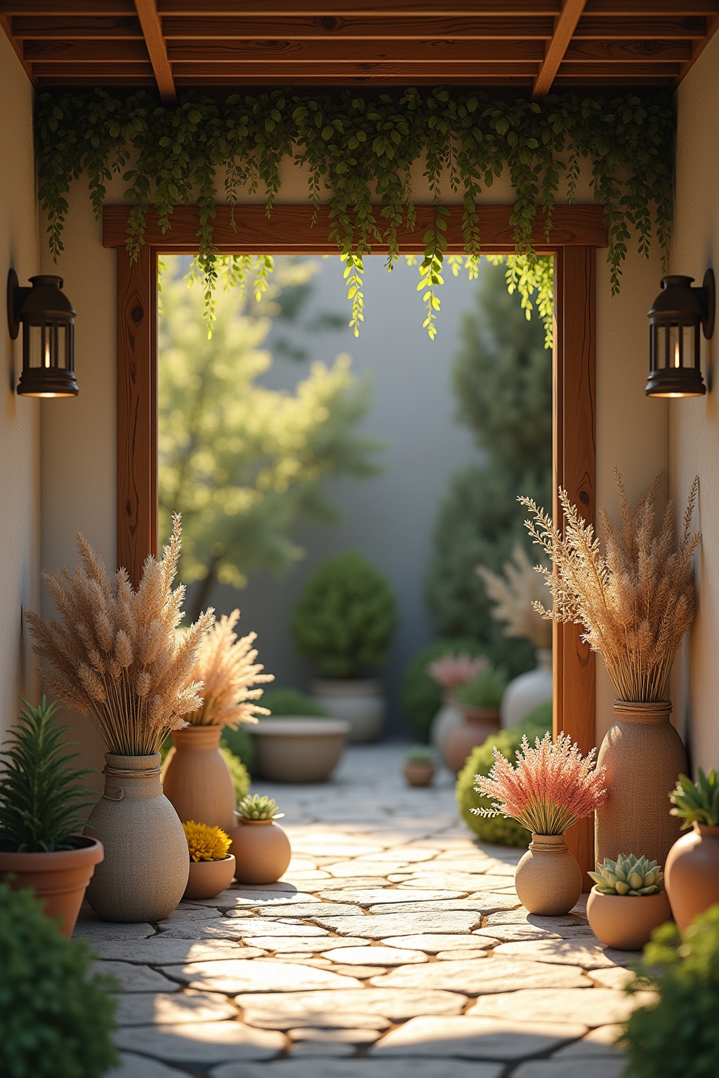 Verwandle Deine Eingangstreppe in ein blühendes Paradies mit kreativen Mini-Gärten und Pflanzarrangements, die jeden Besucher beeindrucken werden. Durch die geschickte Platzierung verschiedener Pflanzgefäße auf unterschiedlichen Höhen erzeugst Du einen dynamischen Look, der Deinem Hauseingang sofort Leben einhaucht. Die Kombination aus blühenden Frühlingsblumen wie Narzissen, Tulpen und Hyazinthen sorgt für ein farbenfrohes Spektakel, das die grauen Wintertage endgültig vertreibt. Besonders effektvoll wirken gestaffelte Arrangements, bei denen Du größere Töpfe unten und kleinere weiter oben platzierst, um eine harmonische Optik zu schaffen. Mit wetterfesten Gefäßen in Pastelltönen oder natürlichen Materialien unterstreichen Du den Frühlingscharakter und schaffst einen stilvollen Rahmen für Deine Pflanzen. Ergänze Deine Pflanzarrangements mit dekorativen Elementen wie kleinen Figuren, Laternen oder Windlichtern, um persönliche Akzente zu setzen. Denke daran, pflegeleichte Pflanzen zu wählen, damit Du lange Freude an Deiner Frühlingsdekoration hast und nicht ständig gießen musst.
