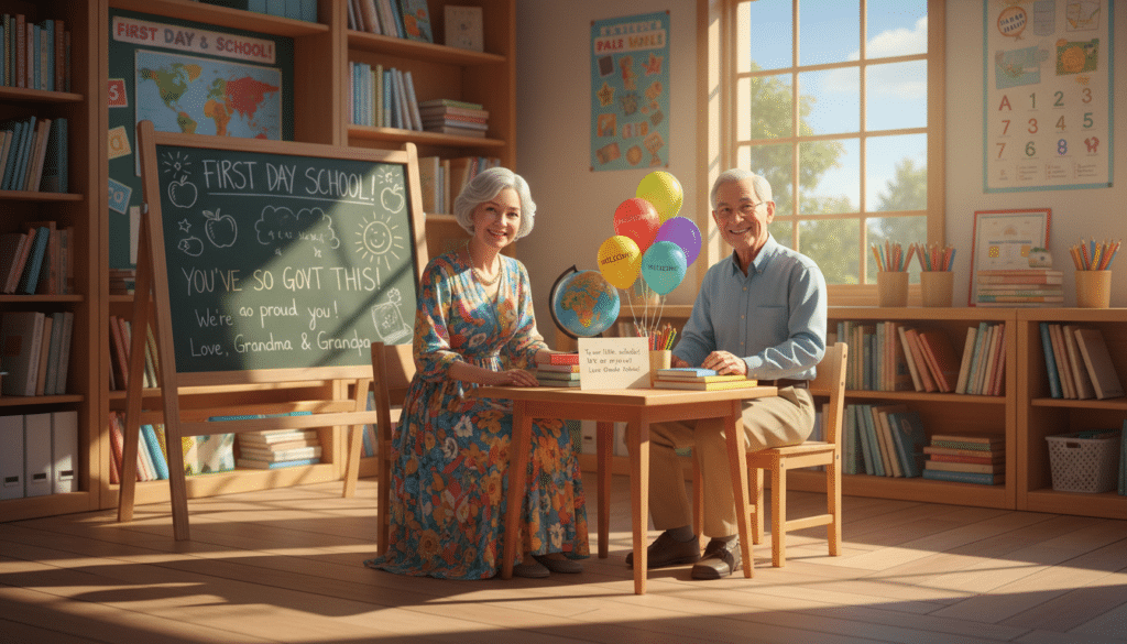 - „Mein liebes Enkelkind, möge dein erster Schultag voller Freude, Lachen und spannender Entdeckungen sein. Wir sind so stolz auf dich und lieben dich über alles!“