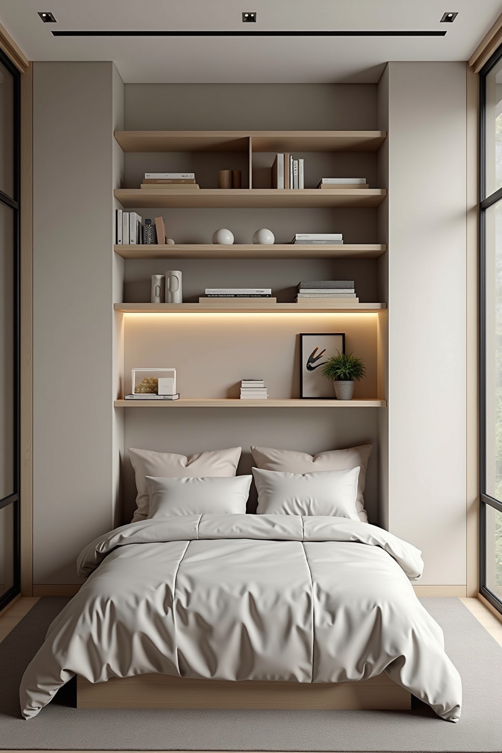 1. Wandmontierte Nachttische oder schmale Regale statt klassischer Nachttische verwenden