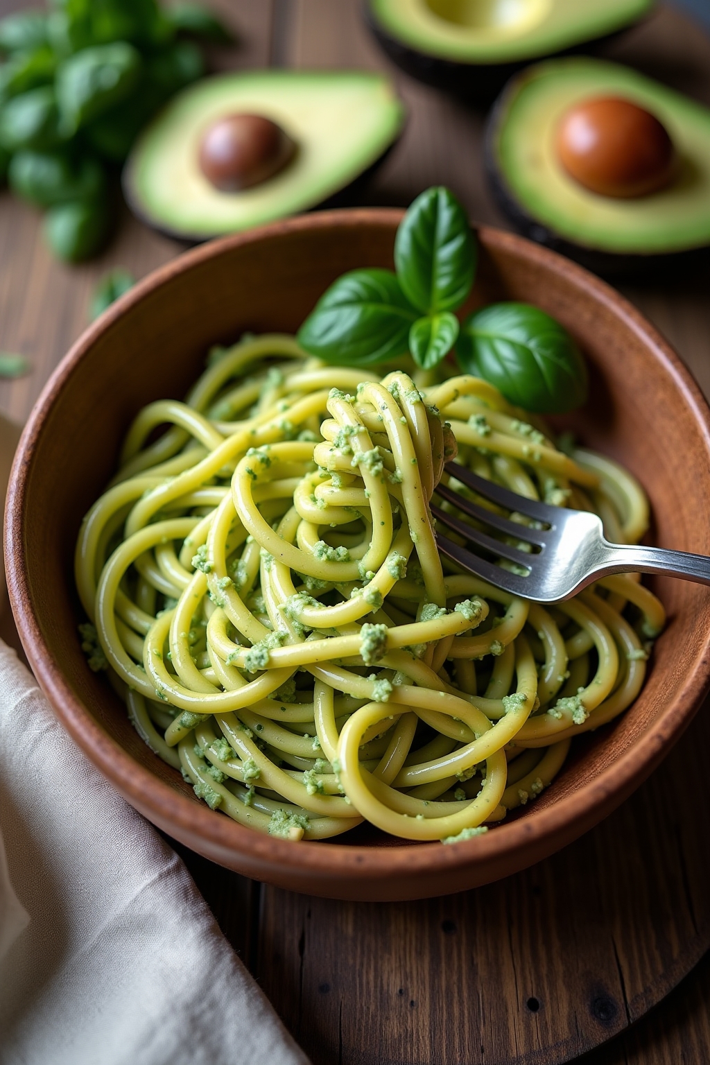 Are you craving a delightful pasta dish that’s both quick to prepare and packed with wholesome ingredients? Our Creamy Avocado Pesto Pasta offers an innovative spin on traditional pesto recipes, combining the rich creaminess of ripe avocados with classic pesto elements for a truly remarkable flavor experience. You’ll be amazed at how the buttery texture of avocados creates an incredibly smooth sauce without the need for heavy cream or excessive cheese, making this a healthier alternative to many pasta dishes. The vibrant green color will brighten your dinner table while the nutritional benefits of avocado – loaded with healthy fats and vitamins – will nourish your body. Best of all, this recipe comes together in just 15 minutes, perfect for those busy weeknights when you need a satisfying meal without spending hours in the kitchen. Even picky eaters will be won over by this creamy, flavorful pasta that tastes indulgent while secretly packing in nutritious ingredients. Whether you’re a seasoned chef or just beginning your culinary journey, this foolproof avocado pesto pasta will become a staple in your recipe collection for years to come.