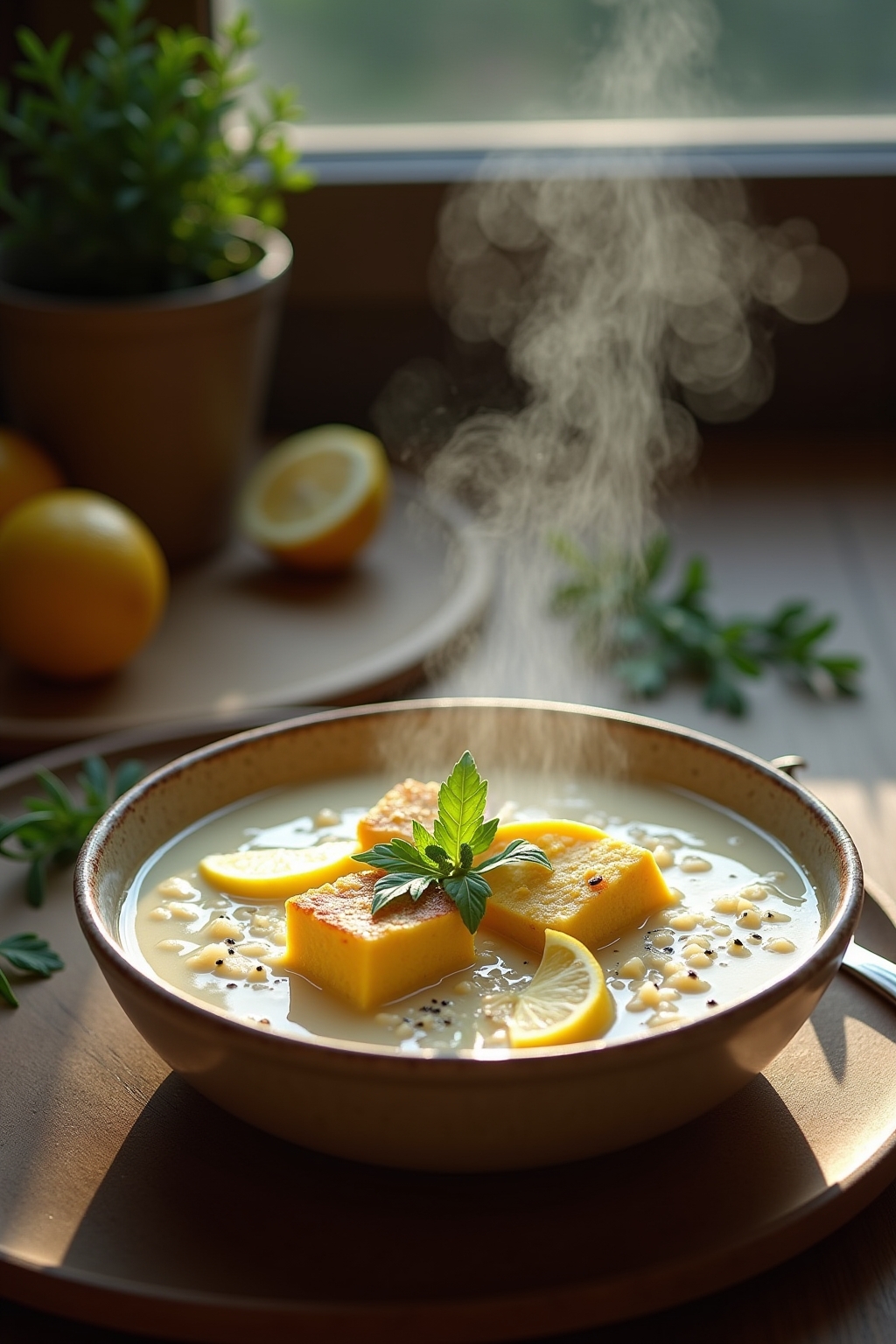 Classic Vegan Greek Avgolemono Soup with Chickpea Base