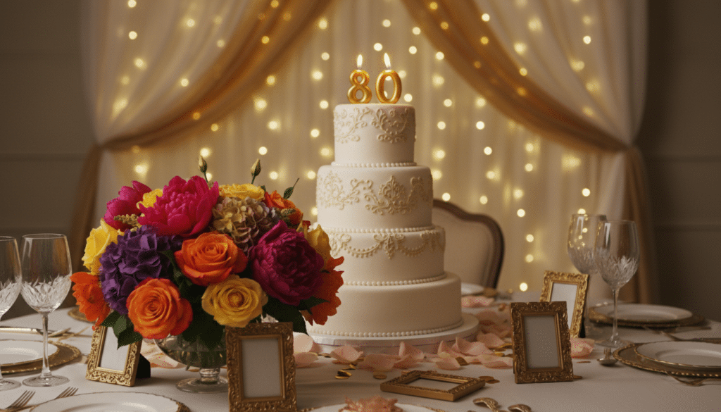 - „Die schönsten Erinnerungen sind wie Sterne, die niemals verblassen. Zum 80. Geburtstag wünschen wir dir, dass dein Himmel immer voller leuchtender Momente bleibt.“