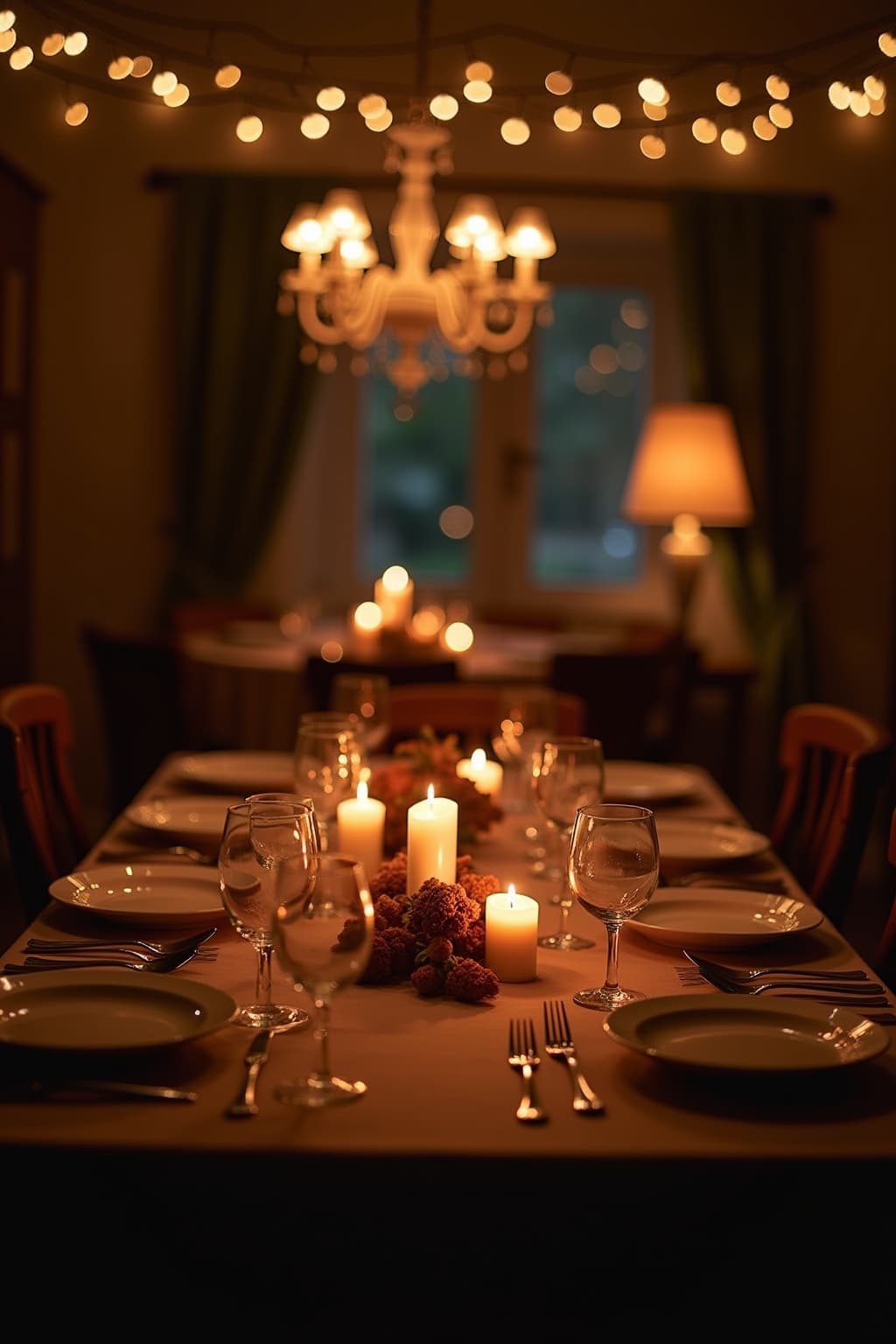 10. Add subtle lighting with tapered candles or small string lights for ambiance