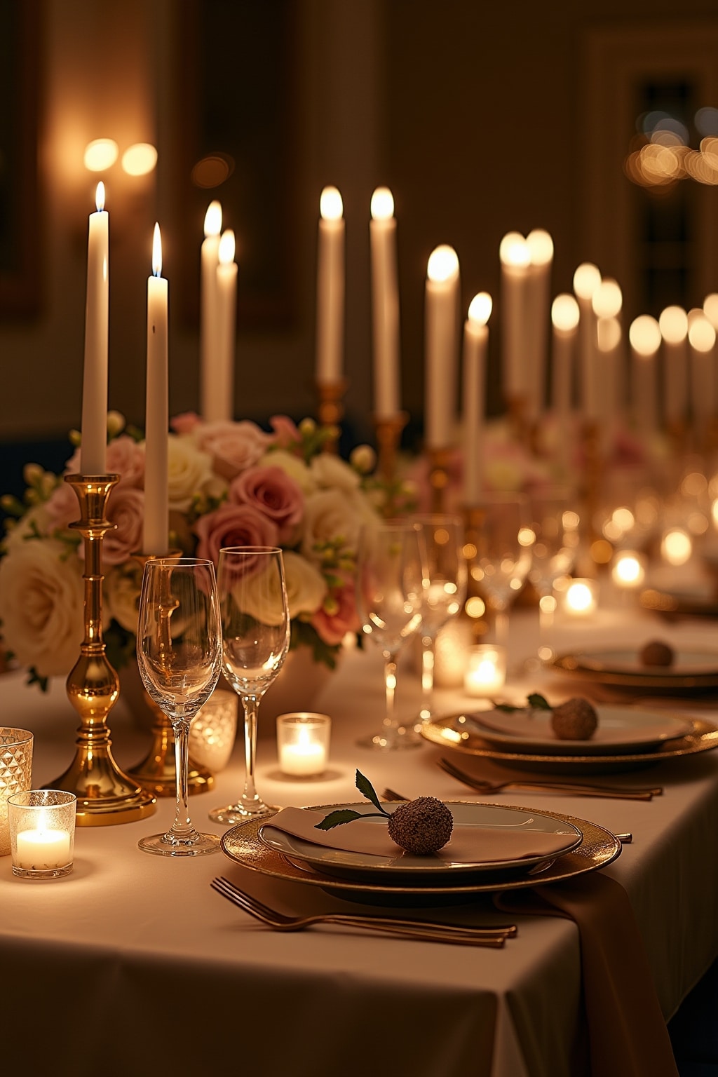 2. Incorporate candles of varying heights for a dynamic tablescape
