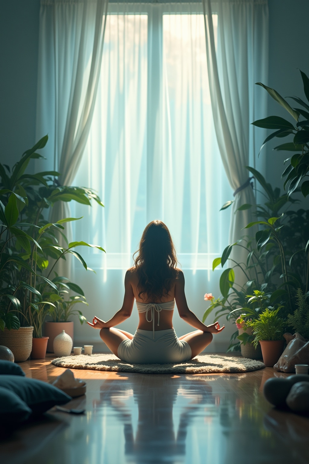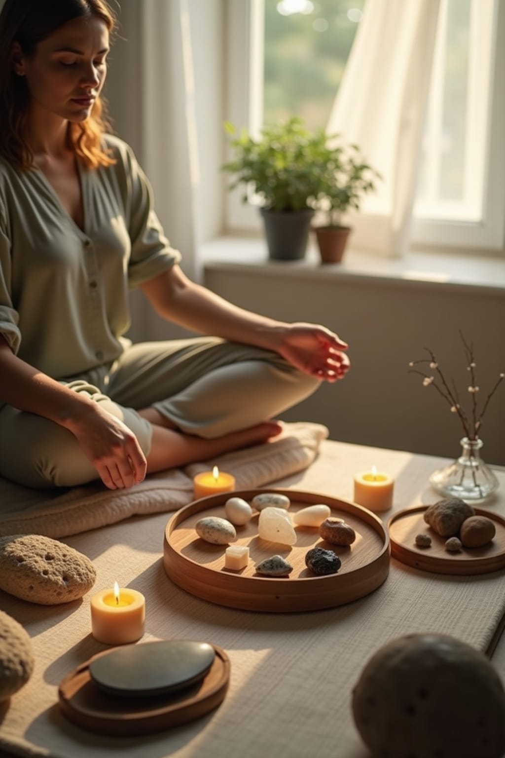 2. Natural elements like plants, stones, and water features ground your practice and connect affirmations to earth’s natural healing energies.