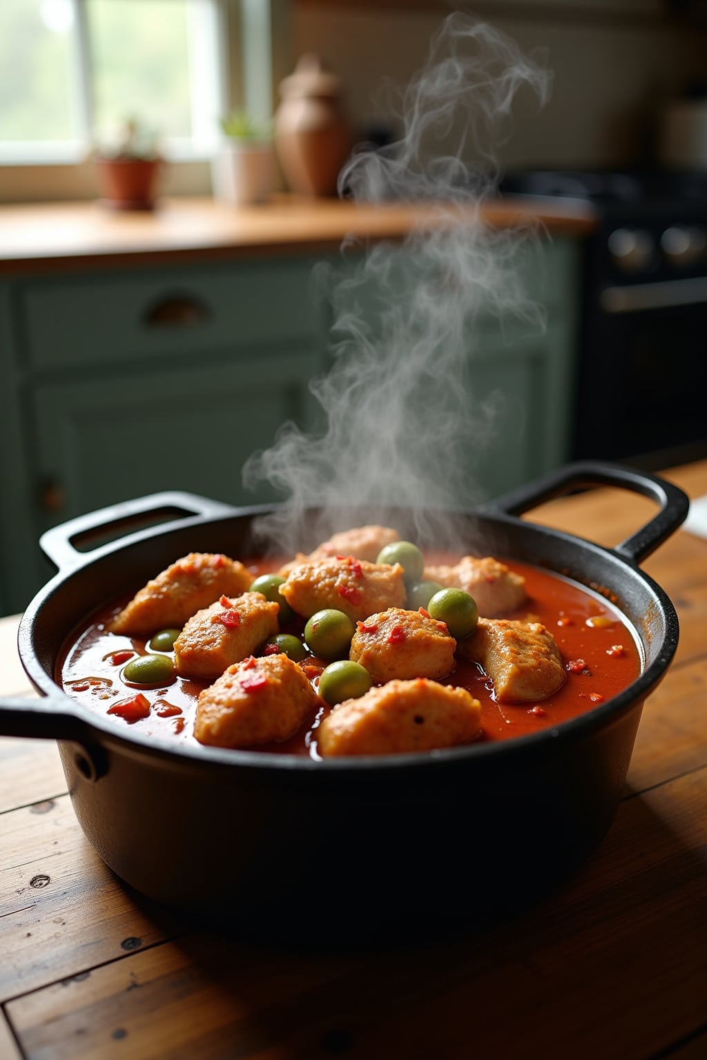 The heritage of Southern Alabama cooking truly shines in this hearty and zesty chicken stew that combines bold flavors with traditional ingredients from the Gulf Coast region. Family cooks across the state have passed down their secret techniques for balancing the heat of cayenne and the earthiness of okra in this beloved comfort dish. The foundation of this stew begins with a dark roux, giving it that distinctive richness that sets Alabama stews apart from their Northern counterparts. Fresh okra, harvested during the hot summer months, serves as both a thickening agent and provides that characteristic Southern texture that locals instantly recognize. Many Alabama families add their own signature twist, whether it’s a dash of local hot sauce or a sprinkle of filé powder borrowed from neighboring Louisiana traditions. The slow simmering process allows the farm-raised chicken to become incredibly tender while the spices infuse every drop of the savory broth. What makes this particular version special is the careful balance between heat and flavor—enough spice to warm you up without overwhelming the natural sweetness of the fresh vegetables and the delicate taste of the chicken.